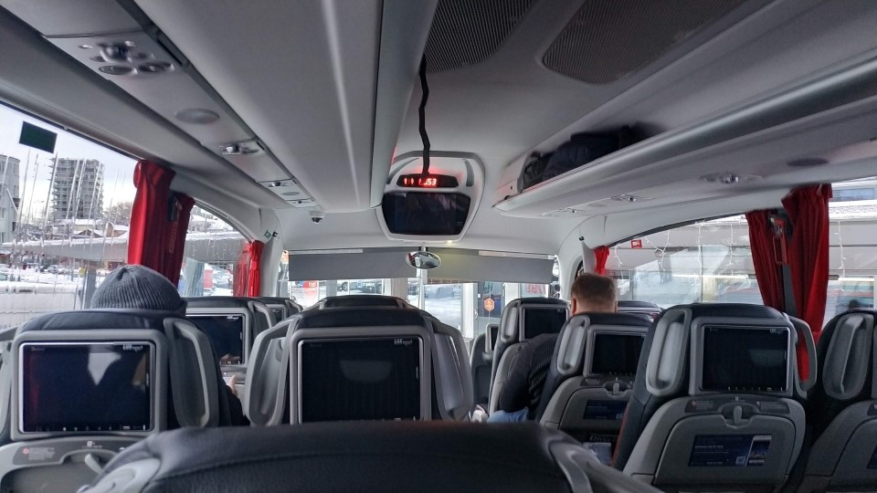 버스의 내부는 아주 깔끔했다. 잡지부터 위생용 봉투까지 거의 항공기 좌석 수준으로 완비되어 있다. 잠시 후 버스가 출발하였다. 녹화된 화면이나 음성이 아닌 버스기사가 직접 에스토니아어, 영어, 러시아어, 라트비아어 무려 4개국어를 라이브로 안내방송을 했다.