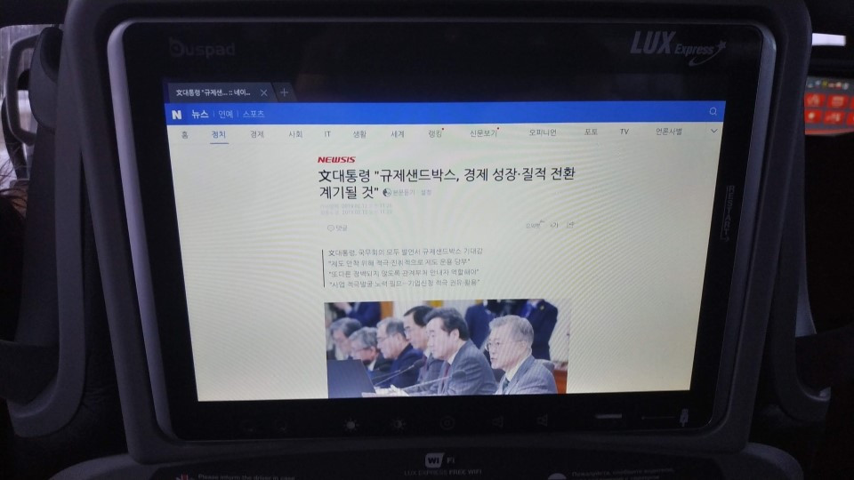 인터넷 브라우저에 접속하니 한국 인터넷 사이트로 접속해서 뉴스를 보았다. 인터넷은 속도도 빨랐고 끊김없이 안정적으로 쓸수 있었다. 예전 우크라이나 버스에서 사용한 인터넷에 비하면 아주 쾌적하다.