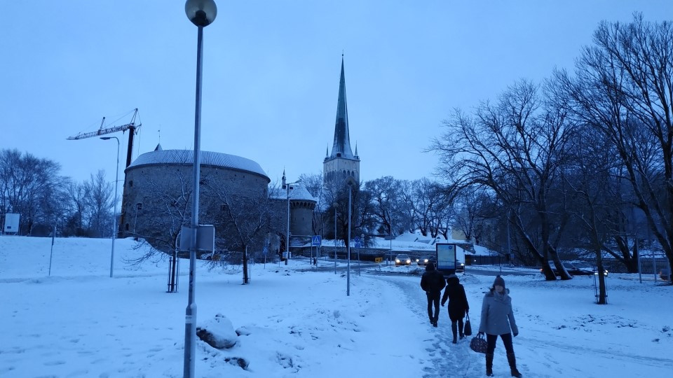 밤사이 눈이 쌓인 탈린의 풍경을 뒤로하고