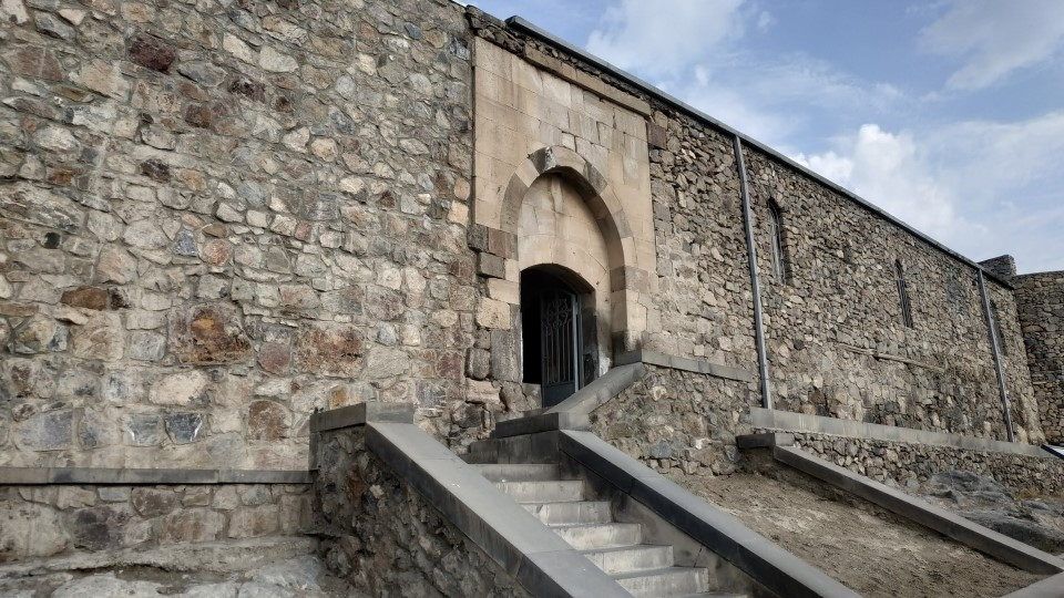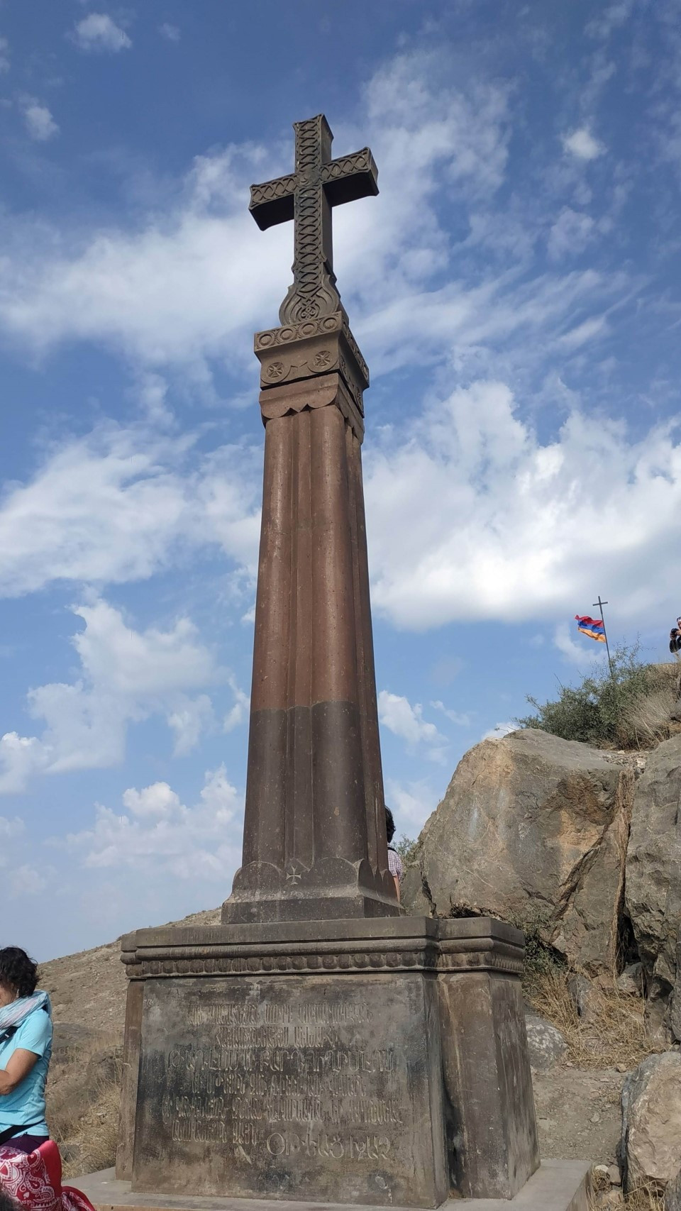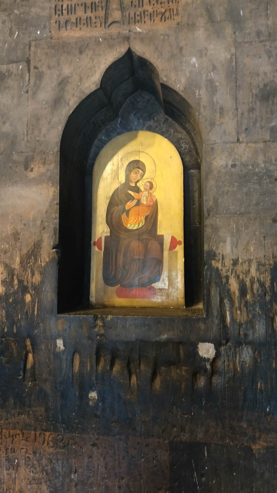 수도원 입구 들어가기 전 고개를 돌려보니 저 멀리 아라라트산이 보였다. 아라라트산은 아르메니아인들의 영산이다. 아르메니아인들은 과거 오스만제국의 대학살 때 전 세계로 뿔뿔이 흩어졌는데 해외로 도망간 아르메니아 인들이 고국을 그리며 항상 아라라트 산을 생각했다고 한다. 성경 창세기의 노아의 방주가 대홍수 이후에 아라라트 기슭에 도착했다고 한다. 그러니까 성경에 따르면 이곳은 인류가 다시 시작한 곳이 되겠다. 아르메니아인들에게는 아쉽게도 이곳은 지금 이곳은 튀르키예의 영토이다. 과거 수차례 영토 분쟁이 있었고 현재 튀르키예 공화국의 전신 오스만제국과 당시 소련의 전신이었던 러시아 제국이 맺은 조약 이후로 쭉 튀르키예의 영토로 남아있다. 비록 지금 아르메니아의 땅은 아니지만 아르메니아 국민들의 아라라트산 사랑은 각별하디. 관공서 민간 할 것 없이 아라라트산의 문양을 새겨놓은 그림들을 아르메니아 국내에서 쉽게 볼 수 있다.
