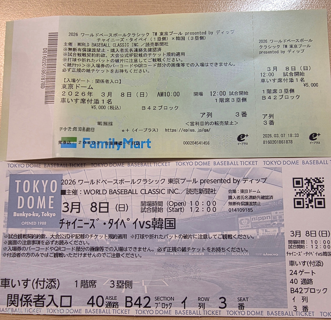 2026년 3월 8일, 일본 도쿄 도쿄돔에서 열린 WBC C조 대한민국과 대만과의 경기를 보기 위해
