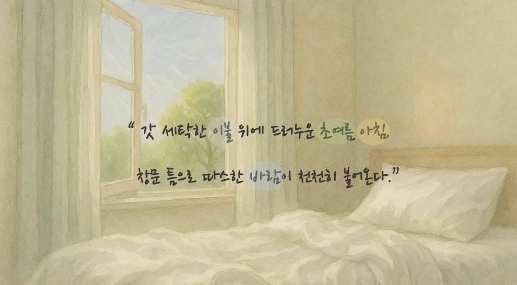 [주요 키워드] 이불, 초여름, 아침, 바람