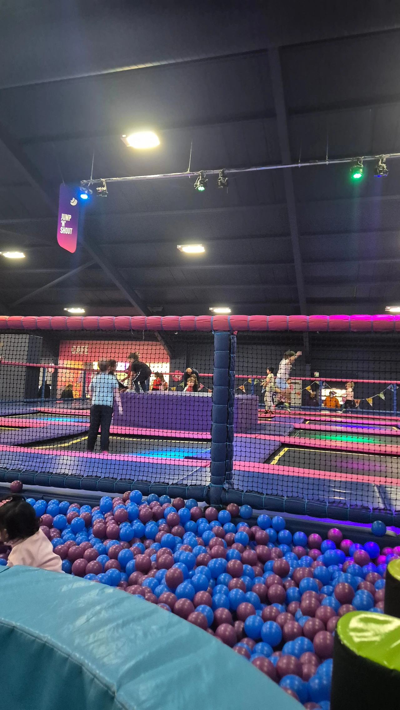 트램펄린 파크는 본래 음악이 크고 조명이 밝으며