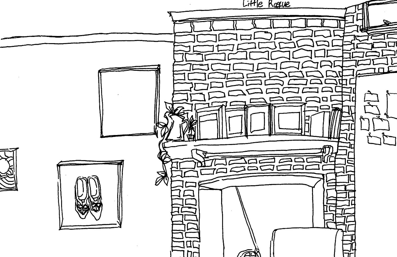그린 그림이었고 나는 그림 속이 보이는 벽면을 바라보면서 앉을 수 있던 낮은 소파 같은