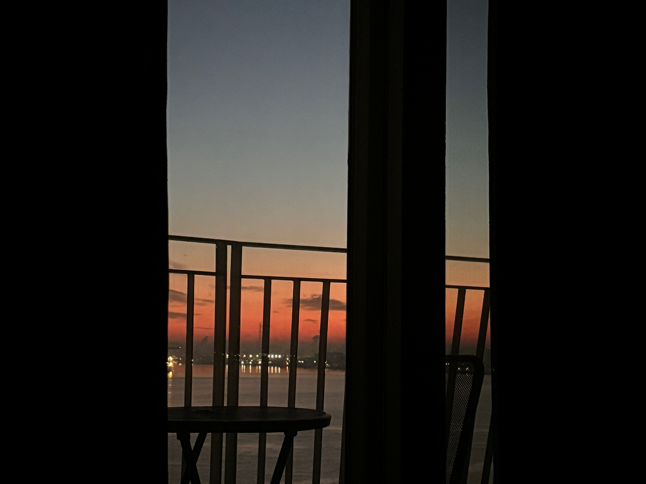 다음날 아침, 잠시 눈이 떠졌는데 마침 해가 뜨고 있을 시간이었다. 평소였으면 시간 가는 줄 모르고 잤겠지만 이 풍경을 눈에 담으라는 신의 계시인지 갑자기 눈이 떠졌다. 그래서 침대에 누운 채로 일출 사진을 찍고 30초 만에 다시 잠들었다.