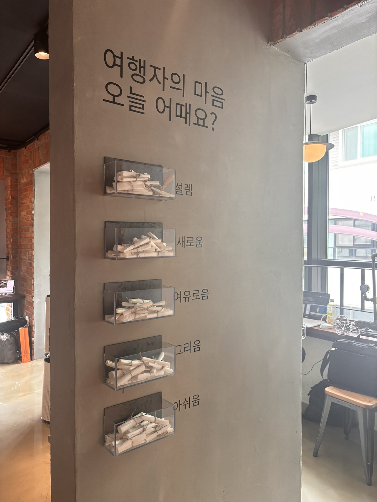 전주여행의 마지막은 다가여행자도서관이었다. 생각보다 규모가 작은 곳이었지만 내 기분에 따라 고를 수 있는 쪽지와 차분한 분위기가 좋았다.