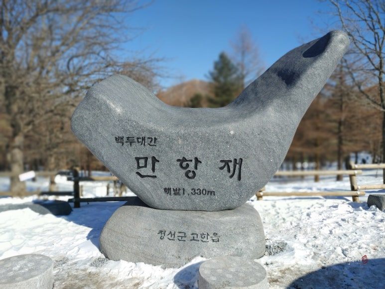 높은 고개입니다. 겨울이면 '천상의 설국'으로 변신하는 곳으로 올라가는 차로 양옆으로 펼쳐진 낙엽송 눈꽃 터널은 겨울 드라이브의 정수로 꼽히고 있습니다. 환상적인 상고대와 평지 산책로처럼 잘 닦여 있어 남녀노소 누구나 눈길을 밟으며 설경을 감상하기 좋은 하늘숲공원의 눈꽃 산책은 핵심 중 핵심 입니다.