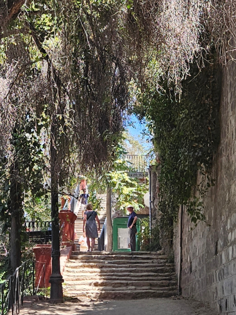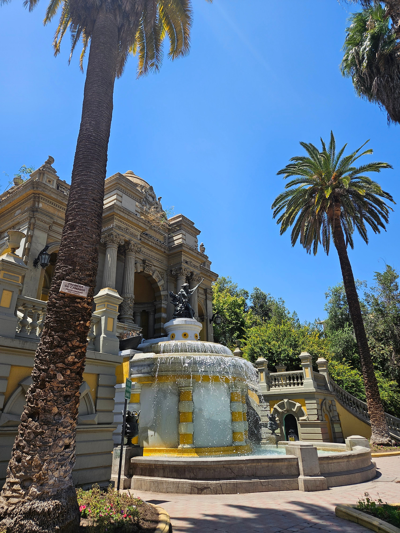 구글 지도는 최단 거리를 알려준답시고 오전에 사진을 찍었던 샛노란 정문 입구가 아닌, 인적이 드문 뒷길로 나를 안내했다. '여기 맞아?' 잔뜩 의심을 품은 채 수상한 길을 따라 올라가다 보니, 드디어 눈에 익은 야자수 나무들과 장난감처럼 생긴 아기자기한 분수가 등장했다. 나는 여기가 전망대인 줄 알았다. 그런데 사람들이 어딘가를 향해 더 올라가고 있길래 그 뒤를 따라가 봤다.