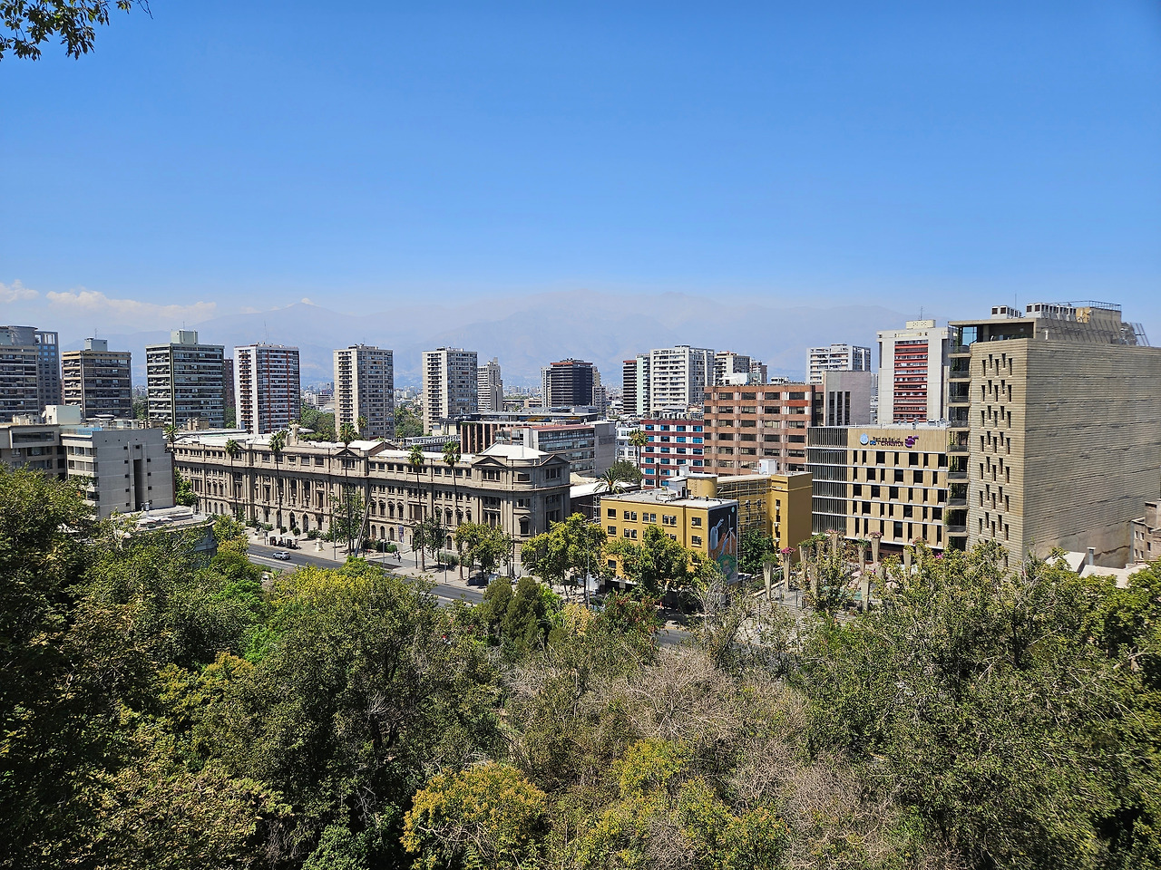 당초 시나리오 상 공항으로 가는 우버를 탔어야 할 시간이 되어서야 전망대에 도착했다. 비행기를 놓칠 위기에 처했지만 그렇다고 전망대까지 올라와서 산티아고 시내뷰를 안 보고 갈 수도 없는 법이다. 도심과 아주 가까이에 병풍처럼 서 있는 안데스 산맥(비록 내가 갔던 날은 미세먼지 때문인지 뭔지 그 형체가 아주 흐리게 보였지만)이 정말 거대했다. 솔직히 그 외에는 대단히 특별한 볼거리는 없었다. 흐린 눈을 하고 보면 동네 뒷산 중턱에서 내려다보는 서울 시내와 꽤 흡사했다.
