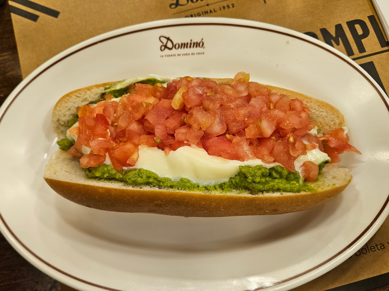 10분 거리 식당에 무려 30분 만에 도착하고 말았다. 이제 남은 시간은 30분 남짓, 이성적인 여행자라면 아마도 산타루시아 언덕을 포기하고 여유롭게 식사를 한 후 우버를 타고 공항으로 이동했을 것이다. 하지만 나는 이미 이성을 잃은 상태였다. 그 무엇도 포기하고 싶지 않은 광기에 사로잡혔달까. 여기저기 정신이 팔려 시간을 다 까먹은 만큼 초스피드로 끼니를 해결하는 수밖에 없었다. D가 알려준 식당 'Domino'는 칠레식 샌드위치를 파는 체인점인데, 현지인들로 가득 차 있는 것으로 보아 맛집이 분명했다. 이곳은 수도이지만 영어가 1도 안 통한다. 번역기를 켜고 여기서 가장 잘 팔리는 메뉴를 추천해 달라고 했다.