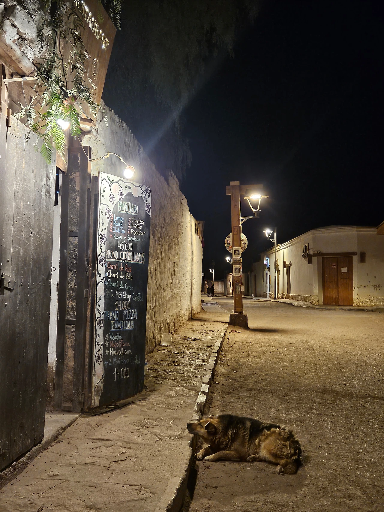 긴장이 풀리니 허기가 느껴졌다. 나는 쫄쫄 굶주린 배를 채우러 아타카마 시내로 걸어갔다. 척박한 사막 위에 투박하게 지어 올린 건물들, 그 사이 군데군데 어둠을 밝히는 가로등, 독특한 밤 거리의 분위기가 맘에 쏙 들었다. 하늘에는 별이 잔뜩 박혀있었다.