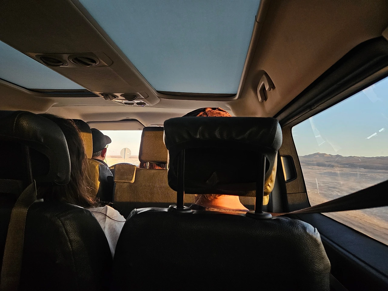 차창 밖으로 펼쳐지는 광활한 사막 너머로 어느새 해가 지고 있었다.