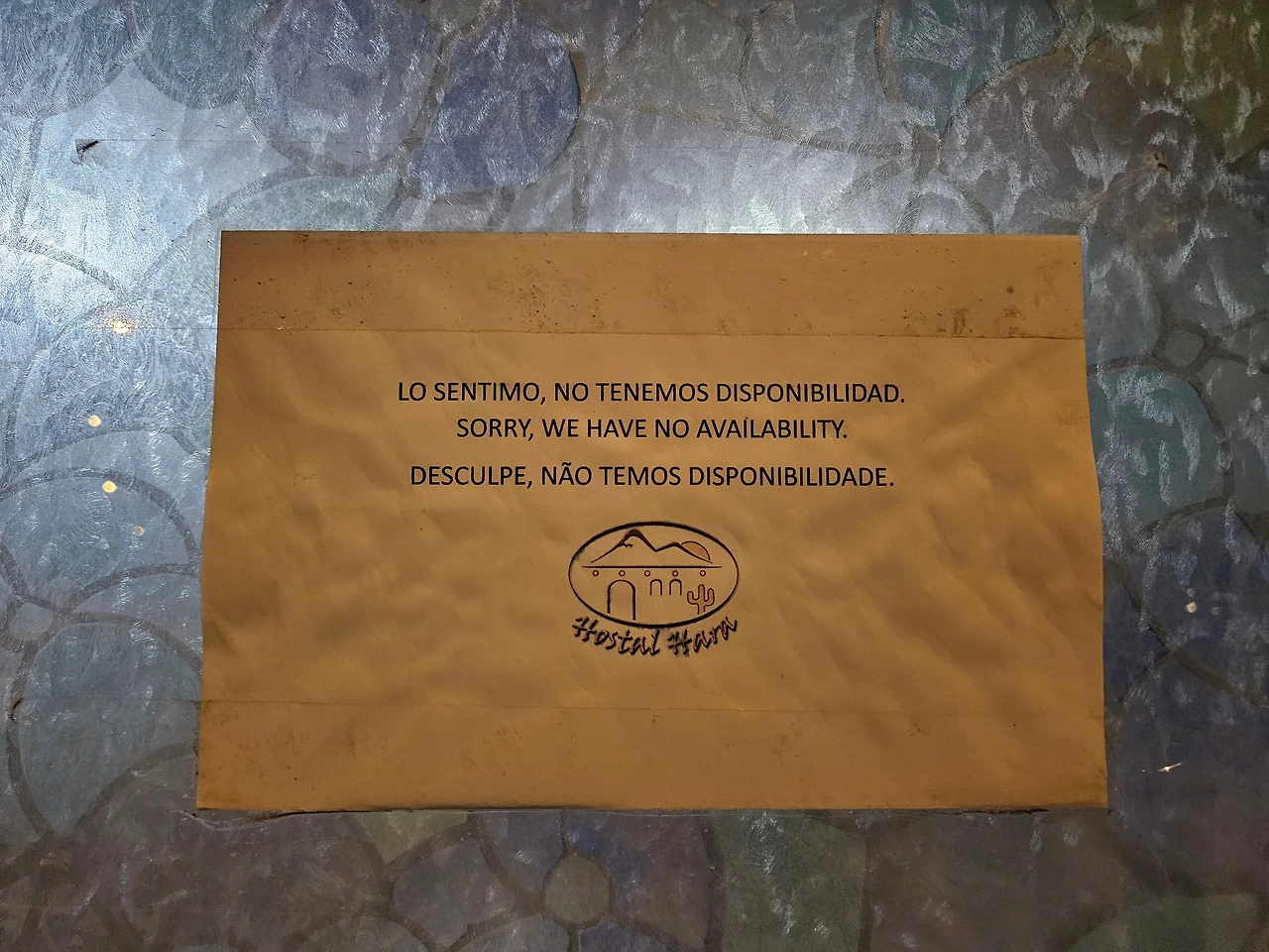 깜깜한 밤이 되어서야 아타카마에 도착했다. 트랜스빕은 여행자 한 명 한 명을 숙소 앞에 내려주었다. 근데 전날 예약한 숙소의 문이 굳게 잠겨 있는 것이 아닌가...