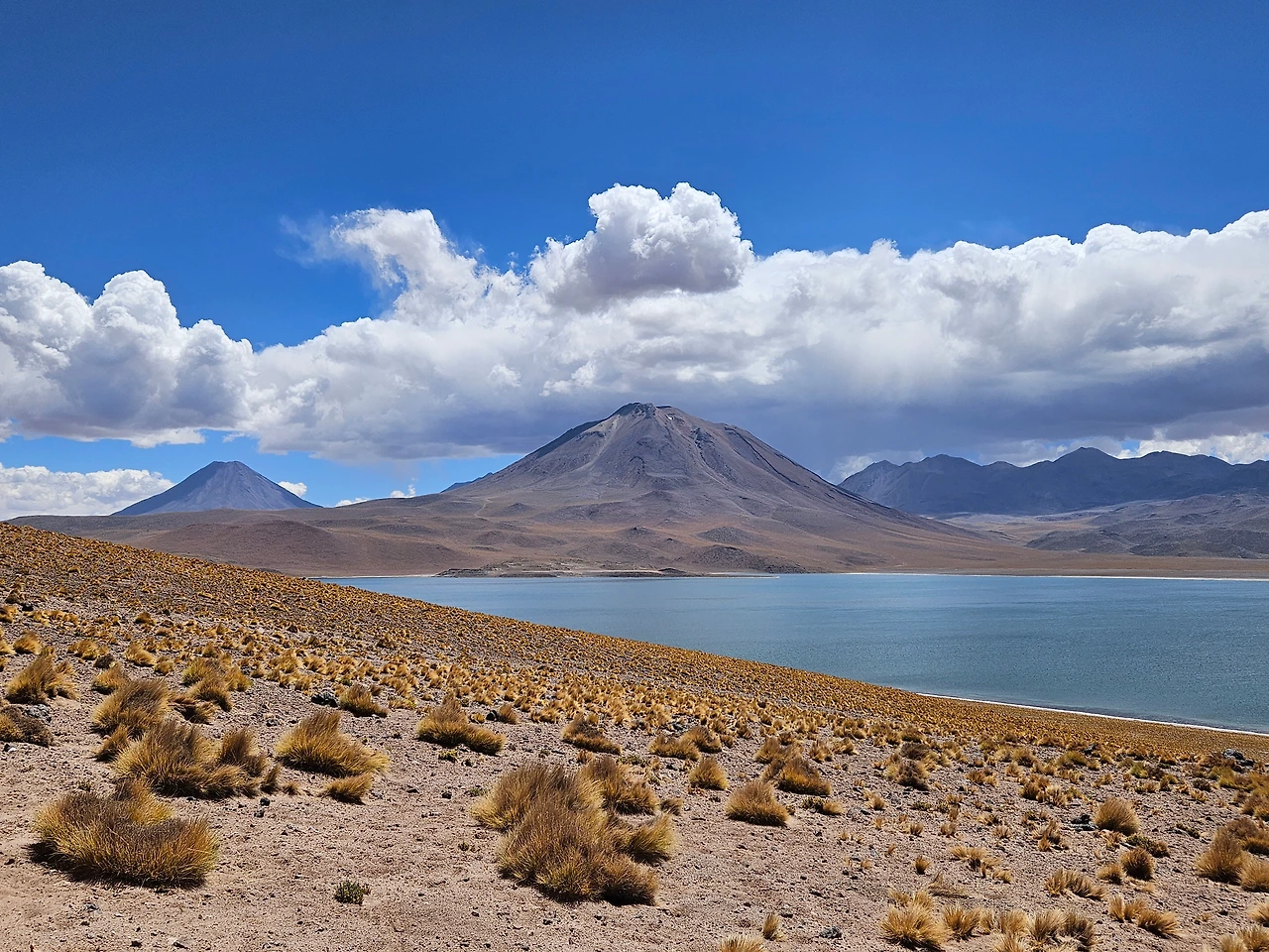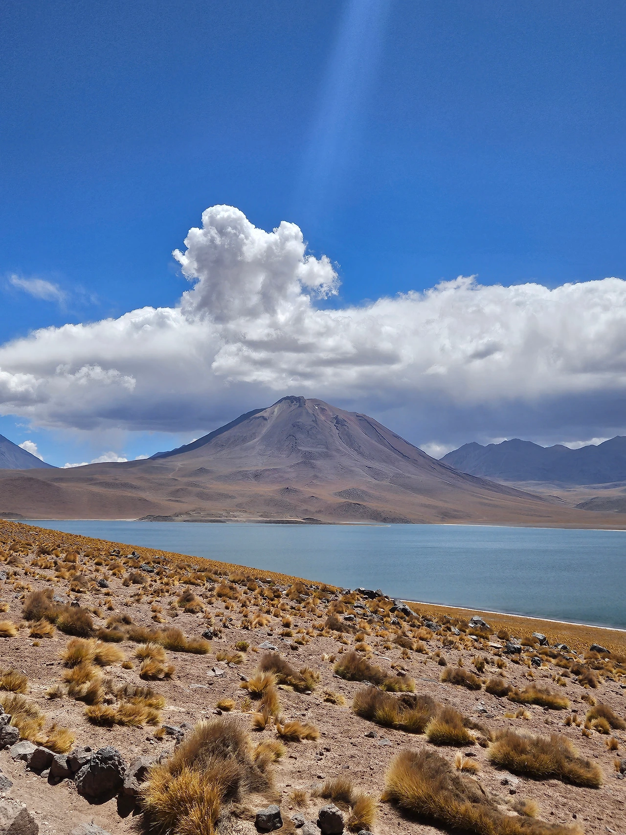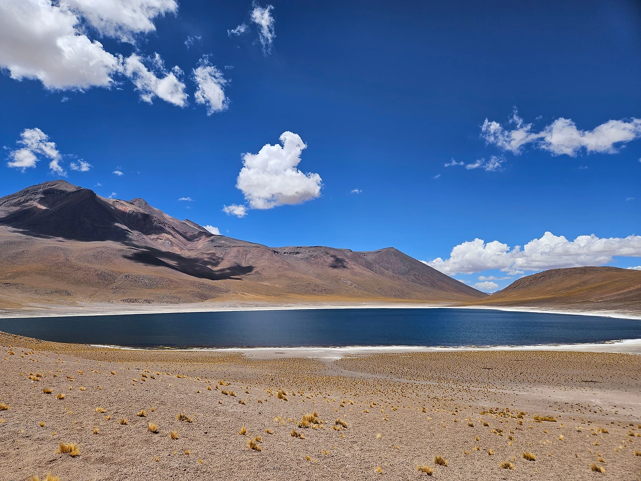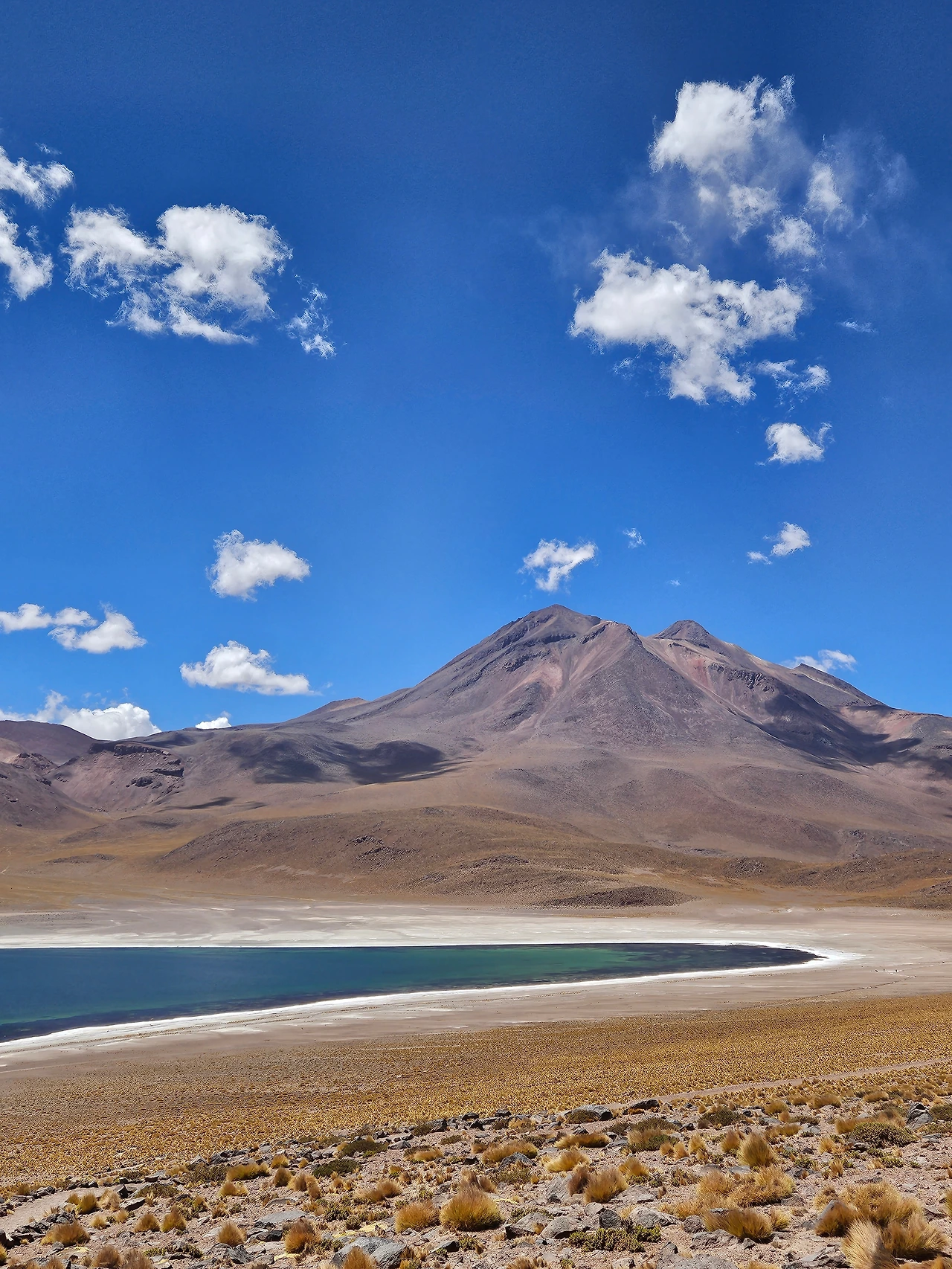 레드락 투어의 두번째 목적지는 무려 해발 4,200미터에 위치한 미스칸티 호수(Laguna Miscanti). 주변에 우뚝 솟은 화산들에 둘러싸인 이 호수는 화산활동으로 인해 흐르던 물길이 막혀 형성되었다고 한다. 카메라 화각에 한 번에 담기지 않을 정도로 거대한 이 호수 바로 옆에 작은 호수가 붙어 있어서 편의상 엄마호수로 칭하도록 하겠다.