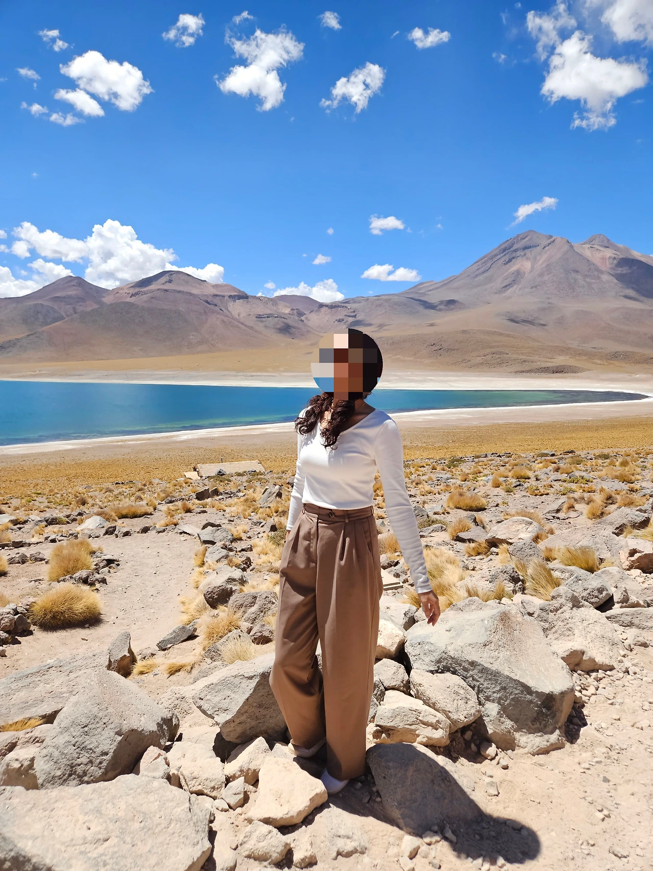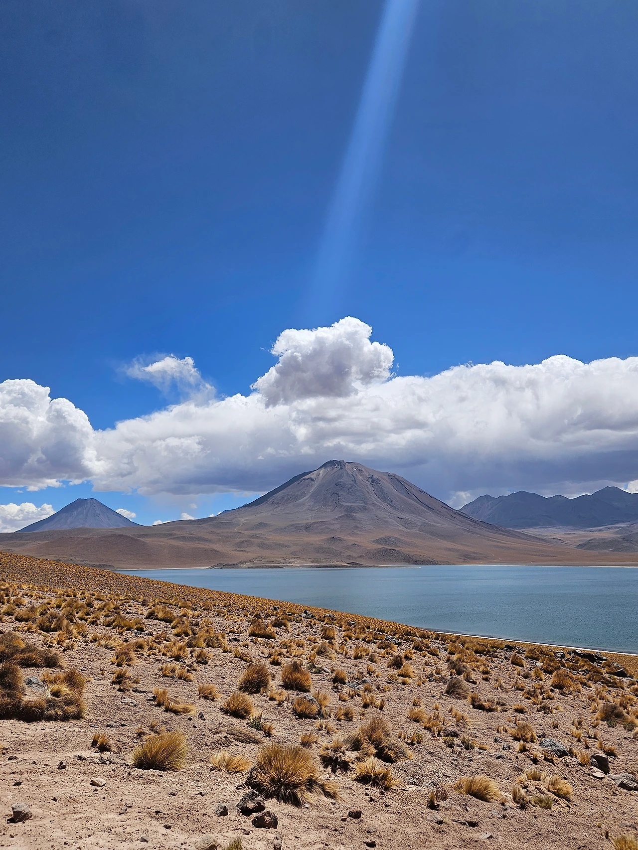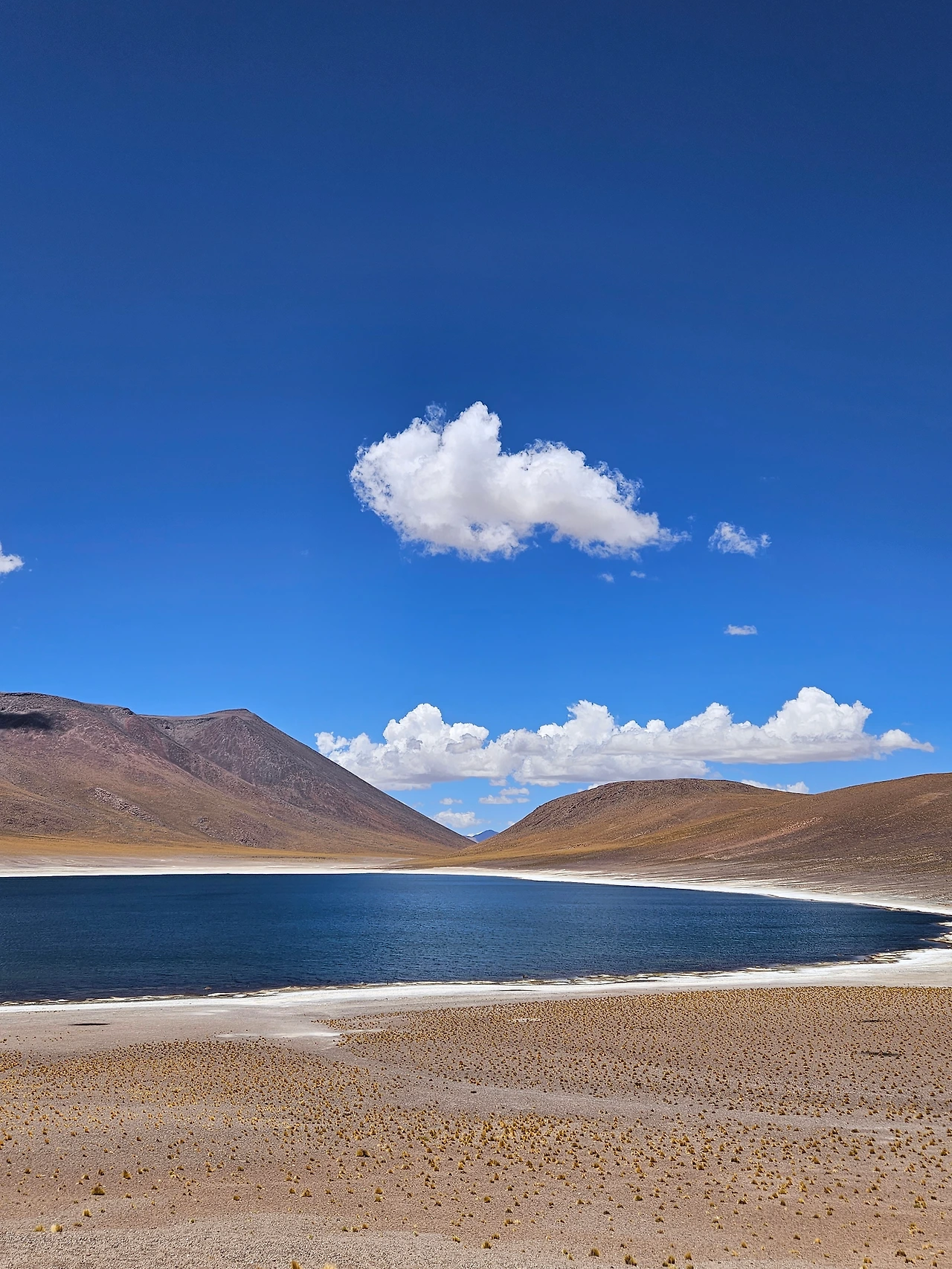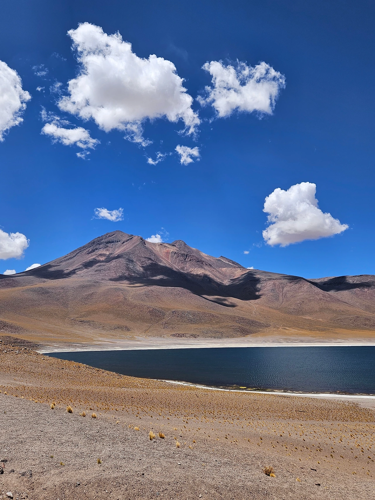 레드락 투어의 두번째 목적지는 무려 해발 4,200미터에 위치한 미스칸티 호수(Laguna Miscanti). 주변에 우뚝 솟은 화산들에 둘러싸인 이 호수는 화산활동으로 인해 흐르던 물길이 막혀 형성되었다고 한다. 카메라 화각에 한 번에 담기지 않을 정도로 거대한 이 호수 바로 옆에 작은 호수가 붙어 있어서 편의상 엄마호수로 칭하도록 하겠다.