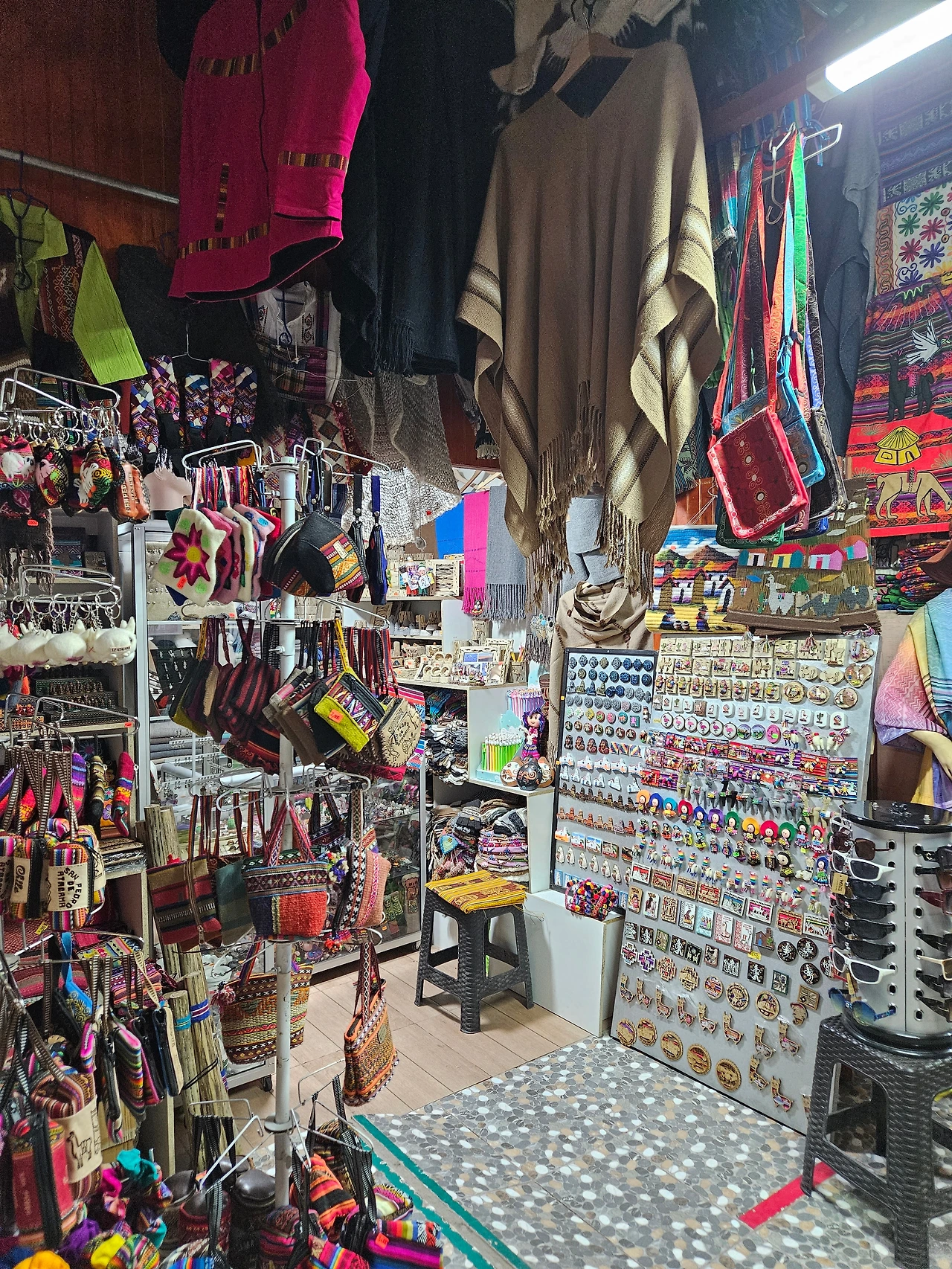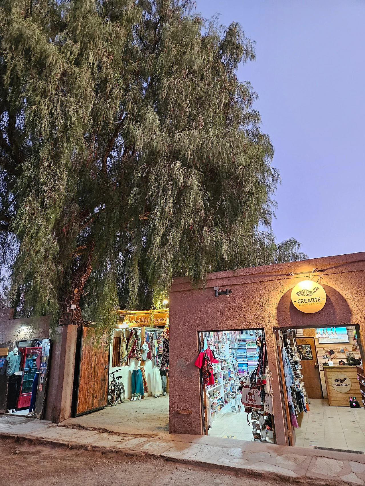 그 지점에서 아타카마에서의 마지막 사진을 한 장 남기고 싶어서 지나가는 사람에게 사진을 부탁했다. 그 사람은 아타카마에 사는 현지인이었는데, 거기 말고 맞은 편이 더 멋있다며 나를 길 건너 편으로 보냈다. 대화를 몇 마디 나누게 되었는데 마그넷 기념품을 사러 가는 길이라고 하니까 이곳이 마그넷 사기에는 가장 좋을 것이라고 하였다. 다른 기념품 상점까지 하나 더 추천해주고 그는 자전거를 타고 떠났다. 그곳은 얼핏 보면 그냥 가게 입구 같지만 여러 기념품 가게들이 몰려있는 작은 시장이었다. 그 사람의 말처럼 마그넷 쇼핑하기에는 최적의 장소였다. 여러 군데 발품을 팔아 봤지만, 나는 이후에 다시 이곳에 돌아와서 마그넷을 샀다.