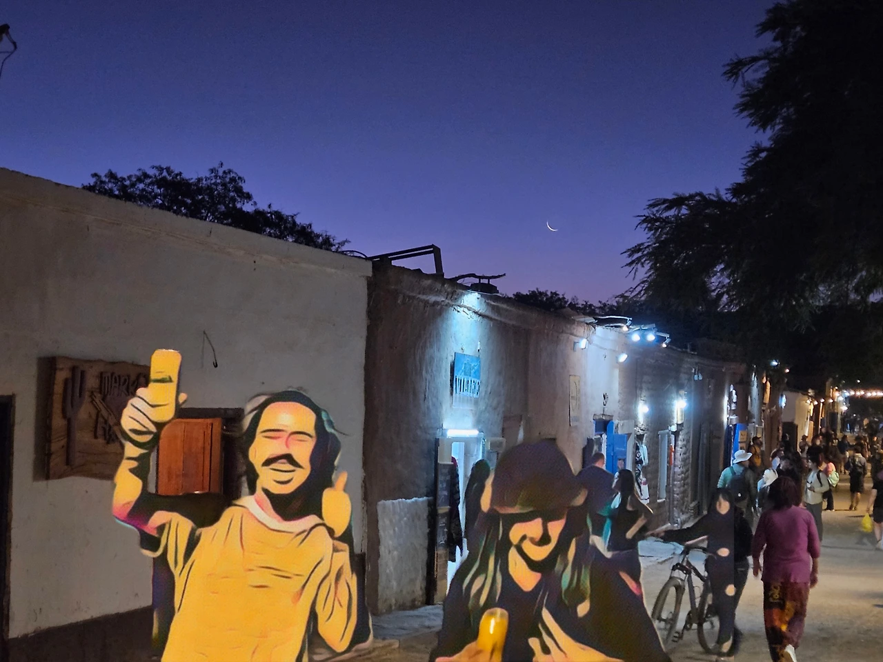 적당한 식당을 찾아 배회라는데 시끌시끌한 바들만 눈에 들어왔다. 이 강력한 이끌림... 아무래도 아타카마에서 마지막 만찬을 즐긴 후 혼자라도 펍들을 돌면서 아타카마의 바이브를 완전히 느끼고 가야만 직성이 풀릴 것 같았다. 나는 호스텔에서 공짜로 하룻밤 내어 준 침대를 이용하지 않기로 결심했다. '잠은 무슨. 여기 또 올 거 아니잖아!' 이 길바닥에서 유흥을 즐기다 곧바로 새벽 3시 야간버스를 타는 것이 백번 옳았다.