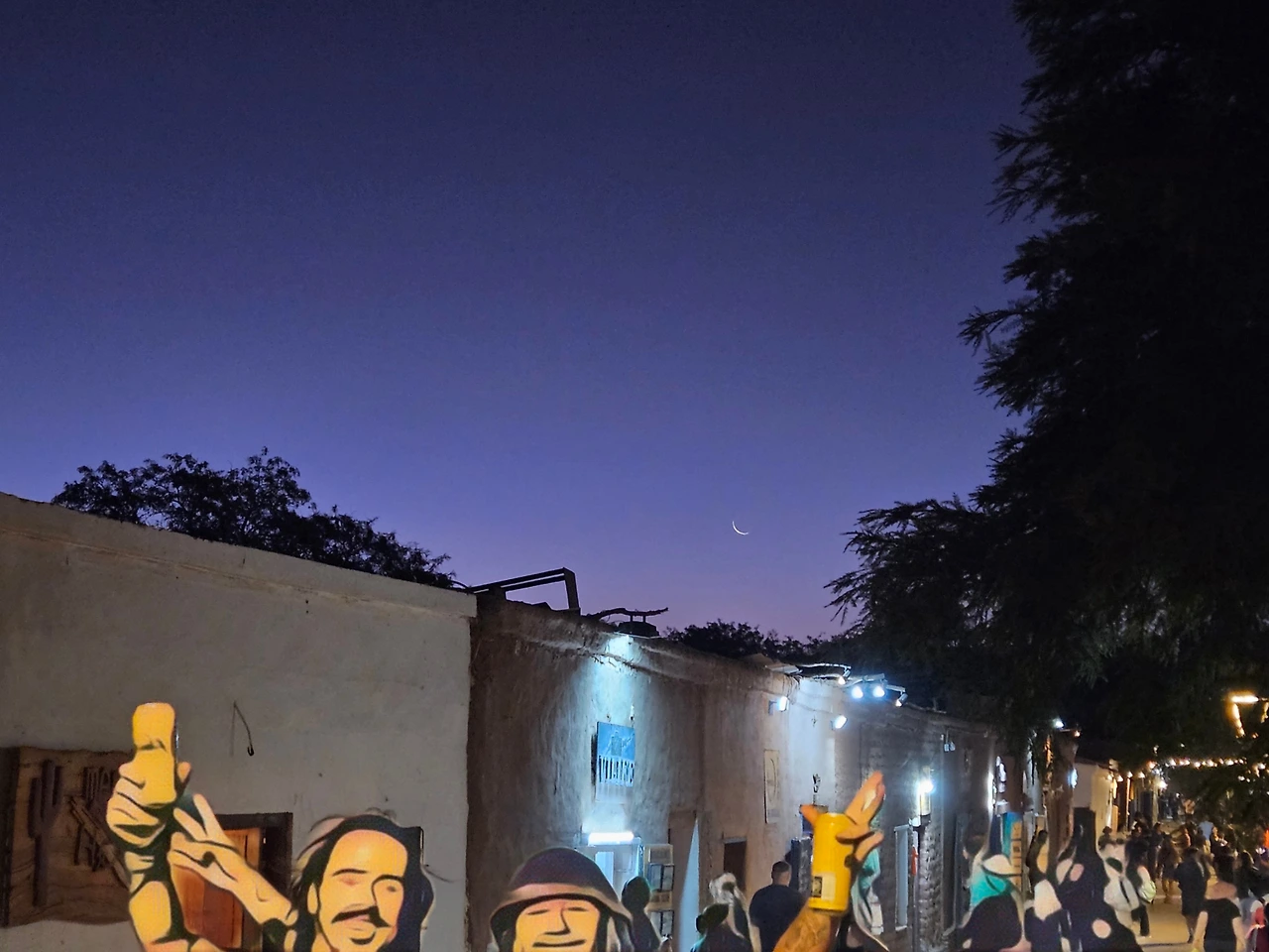달이라면 환장하는 나는 열심히 아타카마의 손톱달을 찍어댔다. 그때 카메라 화면에 장난끼가 가득한 얼굴 두 개가 불쑥 튀어나왔다. 이틀 전 밤 길 위에서 함께 춤을 췄던 그 친구들이었다!그들은 나를 알아보고 카메라 렌즈를 통해 손을 흔들어 주었다.