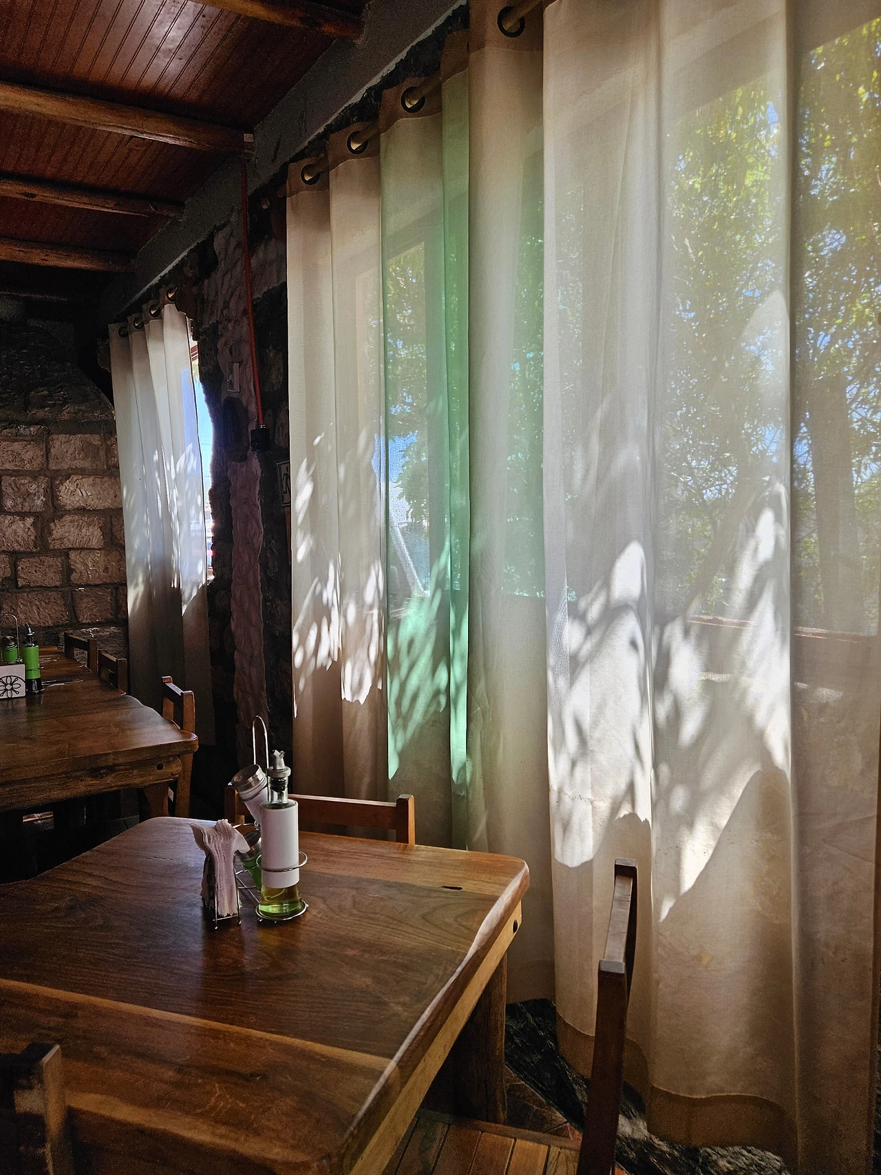 가이드 A를 따라 들어간 곳은 이제 막 문을 연 듯한 텅 빈 식당이었다. 간판을 보니 아까 가려고 했던 식당의 2호점인 것 같았다. 통나무집처럼 어둑어둑한 실내를 창문을 통해 새어 든 늦은 오후의 기울어진 햇빛이 은은하게 밝히고 있었고, 우리 열두 명은 창가 옆 햇빛이 바로 드는 테이블들을 모두 점령했다. 손님이 우리뿐인 식당, 사실상 통으로 빌린 것이나 다름 없었다.