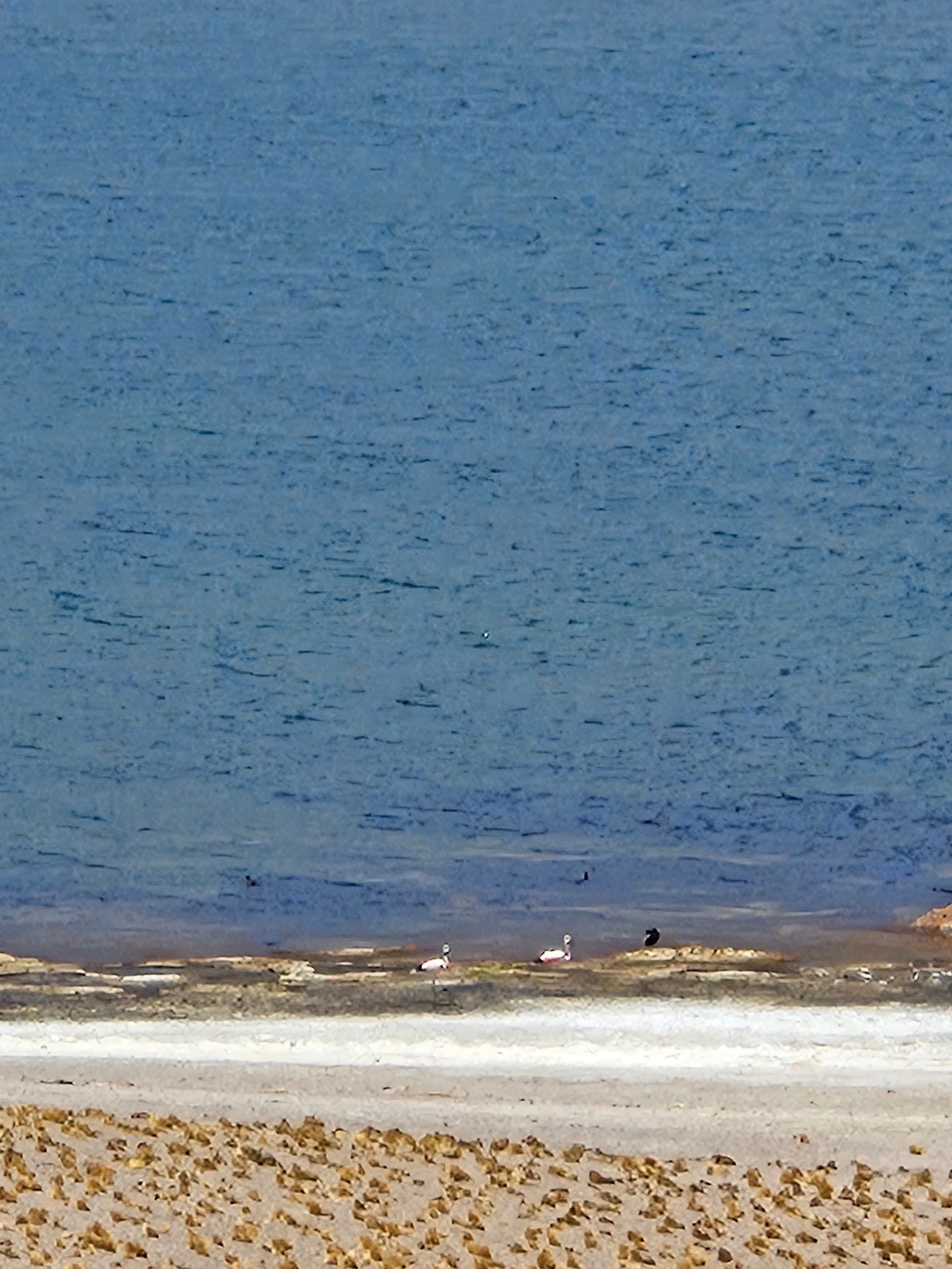 한편 이곳은 플라밍고 보호구역이기도 하다. 멀찍이서 호숫가에서 놀고 있는 개미만한 플라밍고들을 구경할 수도 있는데, 카메라로 줌을 최대로 당겨야 겨우 보일까 말까 수준이다.