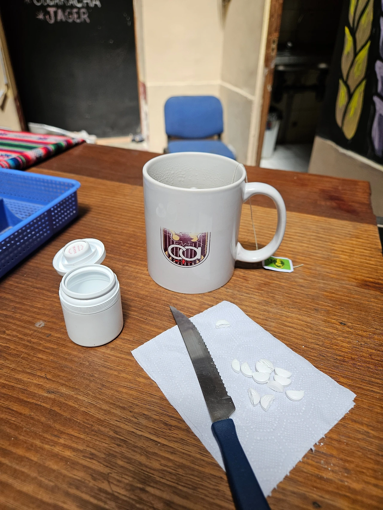 칼을 찾아 1층 로비로 내려가 보았다. 칼이 없을 것 같은 곳에 신기하게도 칼이 있었다. 그 자리에서 알약을 몽땅 쏟아낸 후 한 알 한 알 커팅식을 진행했다. 남미에 도착한 직후부터 며칠이나 미룬 일을 드디어 처리하다니. 공부하기 싫을 때 책상을 정리하는 것과 같은 이치일 것이다.