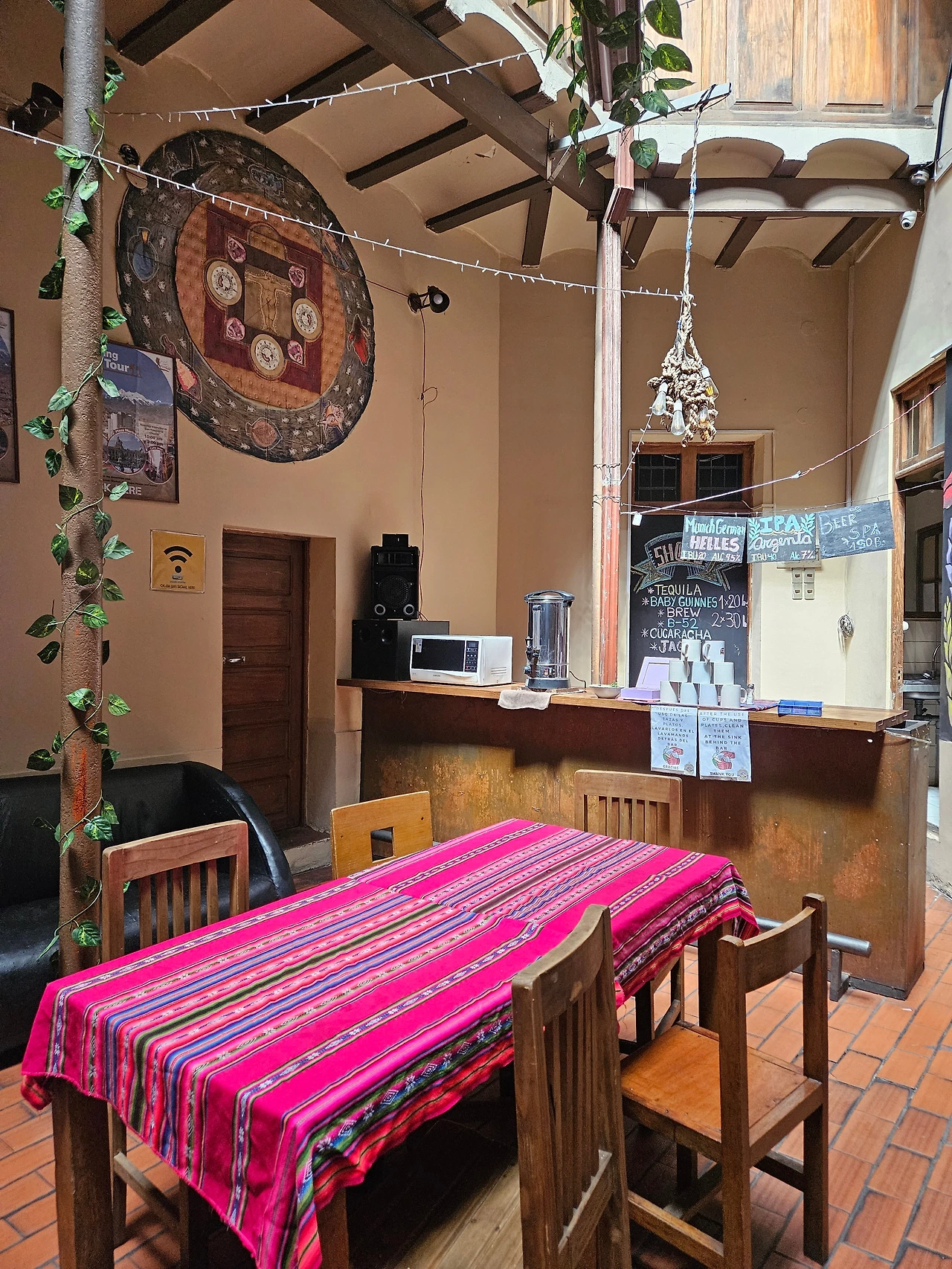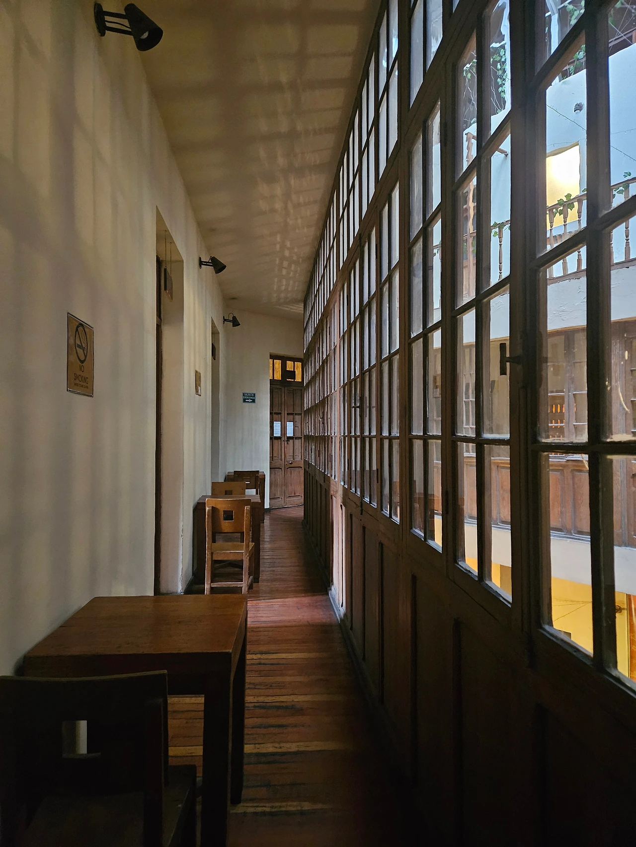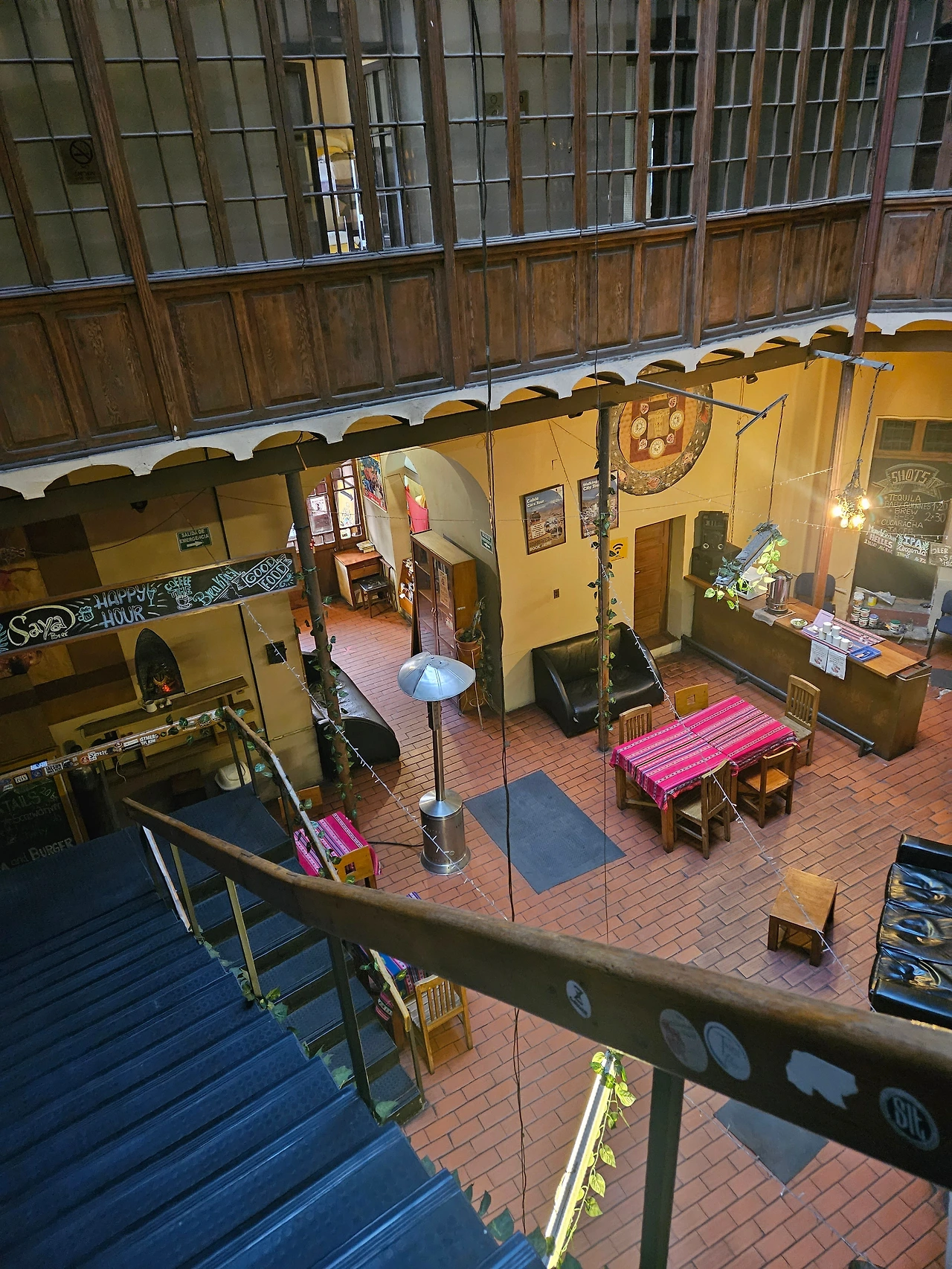 드디어 호스텔에 도착했다. 오로지 버스터미널과의 거리 하나만 보고 전날 예약한 호스텔이었다(사실 남은 방이 여기밖에 없었다.). 아침 8시도 안 된 이른 아침인데 방이 텅텅 비어있는 모양인지 호스텔에서 얼리체크인을 해주었다. 온통 짙은 갈색 나무로 도배 된 낡고 낡은 호스텔이었지만 삼각형 모양으로 가운데를 뻥 뚫어버린 독특한 인테리어가 마음에 들었다.