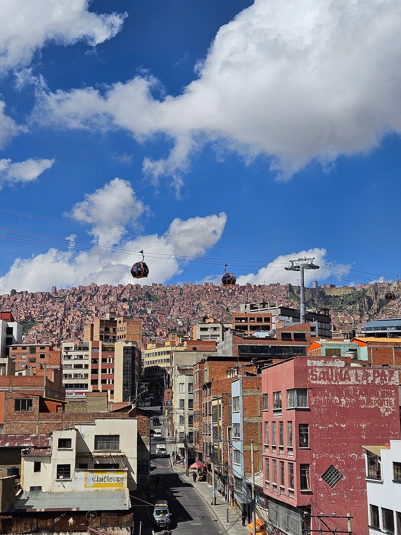 명성에 걸맞게, 정말로 도시가 하늘에 맞닿아 있었다. 벽돌색 건물들이 급경사를 따라 구름까지 다닥다닥 줄을 지어 서 있었고, 라파즈의 대중교통 수단인 케이블카 '텔레페리코'가 공중을 날아다니고 있었다. 더 없이 이국적인 풍경이었다. 사실 라파즈는 볼리비아에서 페루로 넘어가기 위해 어쩔 수 없이 스쳐가는 도시 정도였는데, 이제 정말 각 잡고 둘러보지 않으면 큰일 날 것 같은 예감이 들었다.
