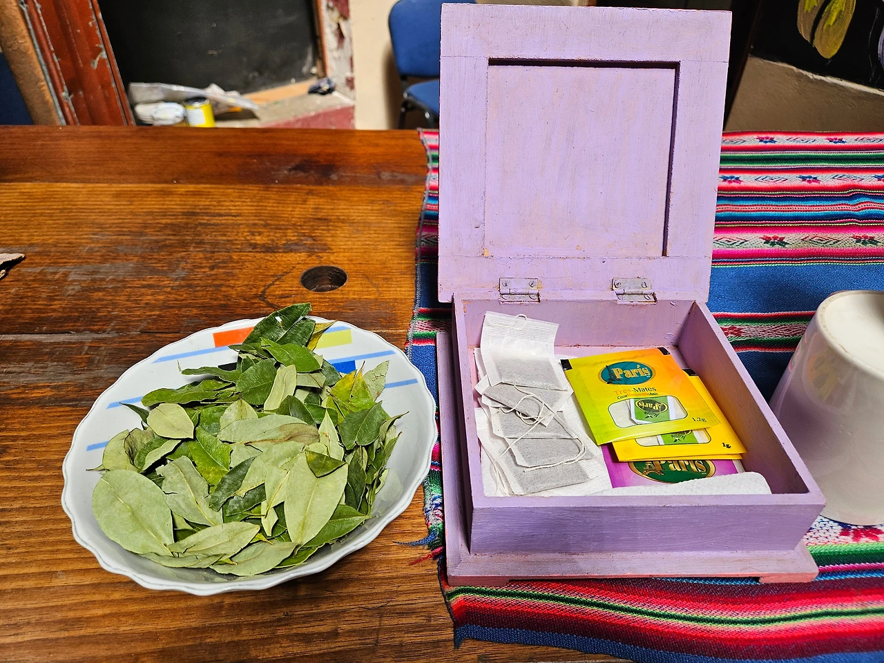 역시 세계에서 가장 높은 수도답게 호스텔 부엌에 고산병에 좋다는 코카잎이 수북히 쌓여 있었다. 더 이상 여행 동선 따위 생각하고 싶지 않으니 오늘은 그냥 발길이 닿는대로 자유롭게 돌아다니기로 한다. 코카차를 한번 마셔볼까 싶었지만 두통은 커녕 여전히 컨디션이 최상이었다. 그래도 오늘 내로 깃발을 모조리 정복하는 것을 목표로 삼기는 해야겠지...? 이딴 걸 마실 때가 아니었다. 동선 짜보겠다고 머리를 쥐어짤 시간에 무작정 뛰쳐 나가서 발부터 움직였더라면 벌써 깃발 한두개 쯤은 정복했을 시간이었다.