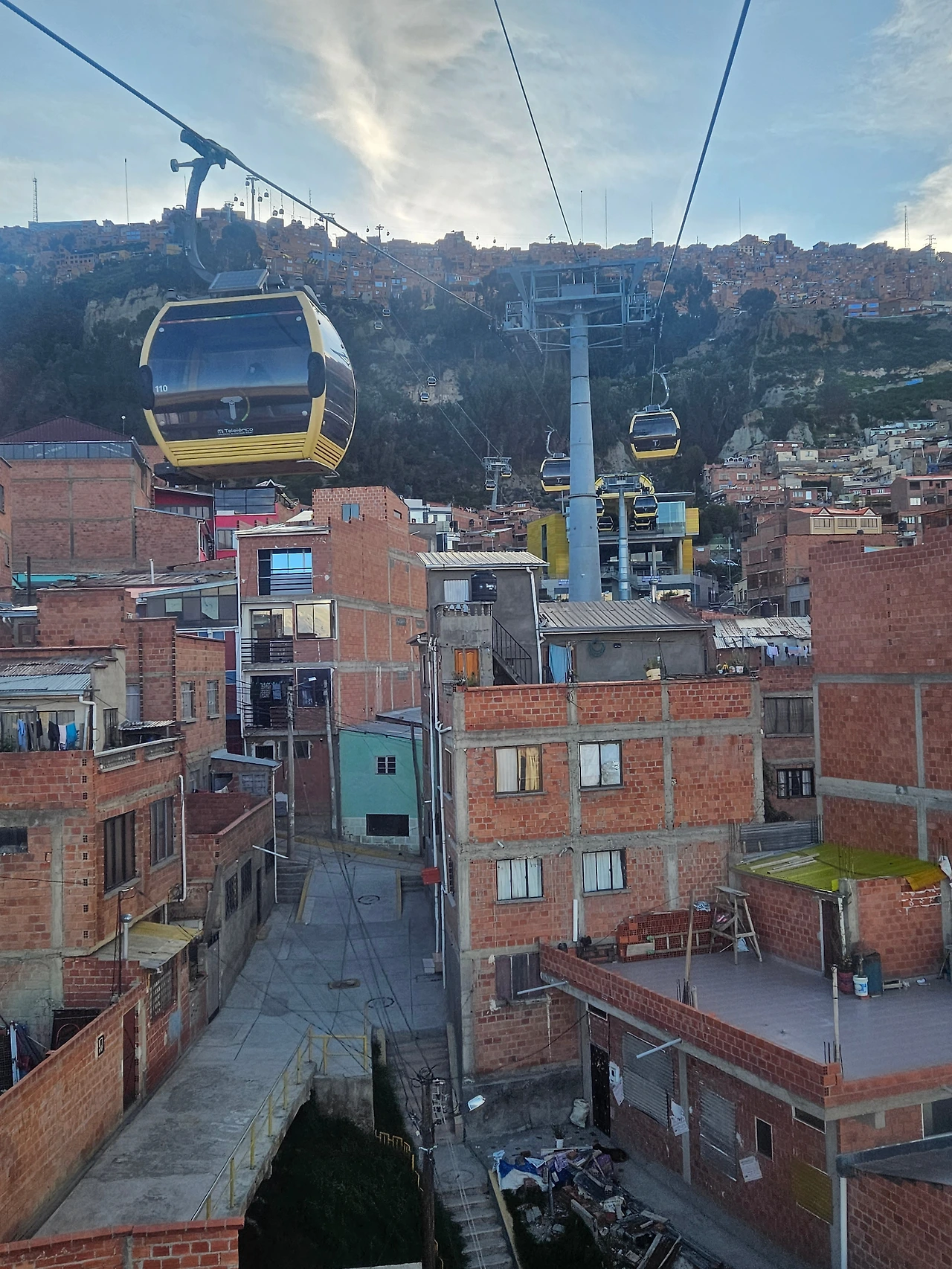 노란색 케이블카는 잠시도 심심할 겨를을 주지 않는다. 이번에는 벽돌 주택 옥상에 널린 빨래감 하나하나가 보일 정도로 가까이 마을을 스쳐갔다. 아마도 라파즈의 고도차를 가장 실감나게 체험할 수 있는 노선이 아닐까.