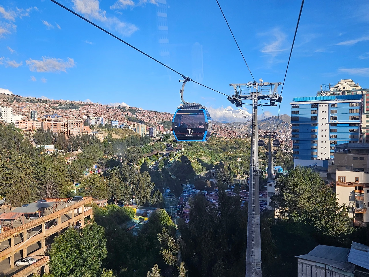 라파즈의 케이블카는 각 노선별로 나름 특징적인 뷰를 가지고 있다. 라파즈 시내 중심부를 지나가는 파란색 노선에서는 도심의 높은 건물들과 산지 지형 곳곳에 빽빽이 자리잡은 알록달록한 주택들을 동시에 내려다 볼 수 있다. 아마도 라파즈가 가진 도시적인 모습을 가장 전형적으로 보여주는 구간이 아닐까 싶다.
