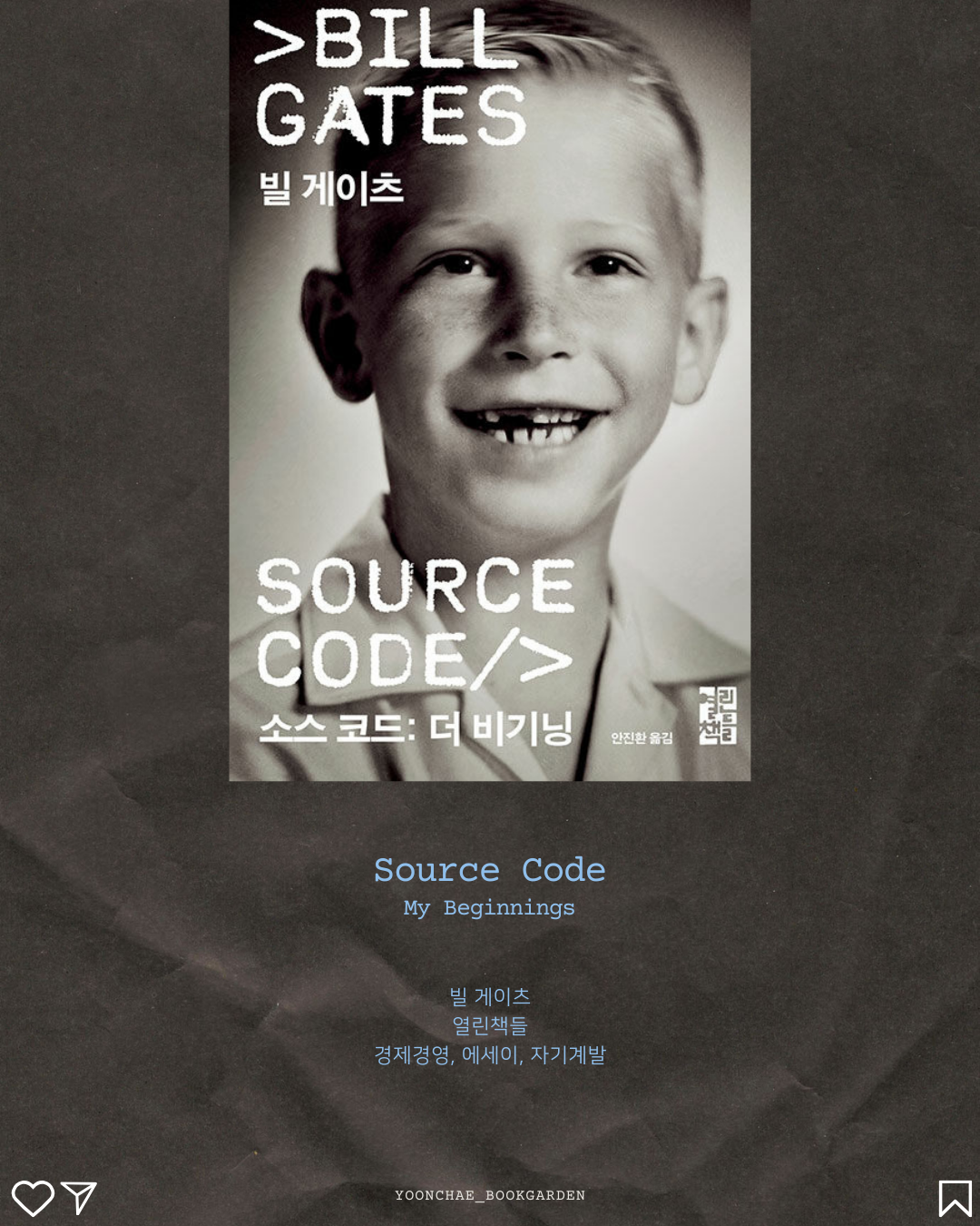 이번에 출간된 <소스 코드: 더 비기닝>은 빌 게이츠가 자신의 어린 시절과 성장 과정을 돌아보며, 오늘의 그를 만들어 준 요소들을 솔직하게 풀어낸 회고록이다. (심지어 그가 직접 썼다고 한다!)