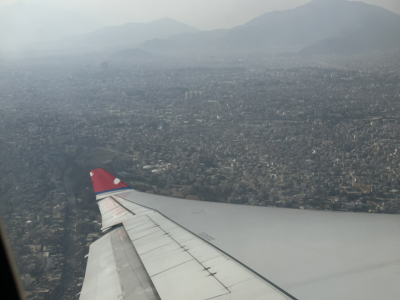 카트만두 상공을 날아 떠납니다.