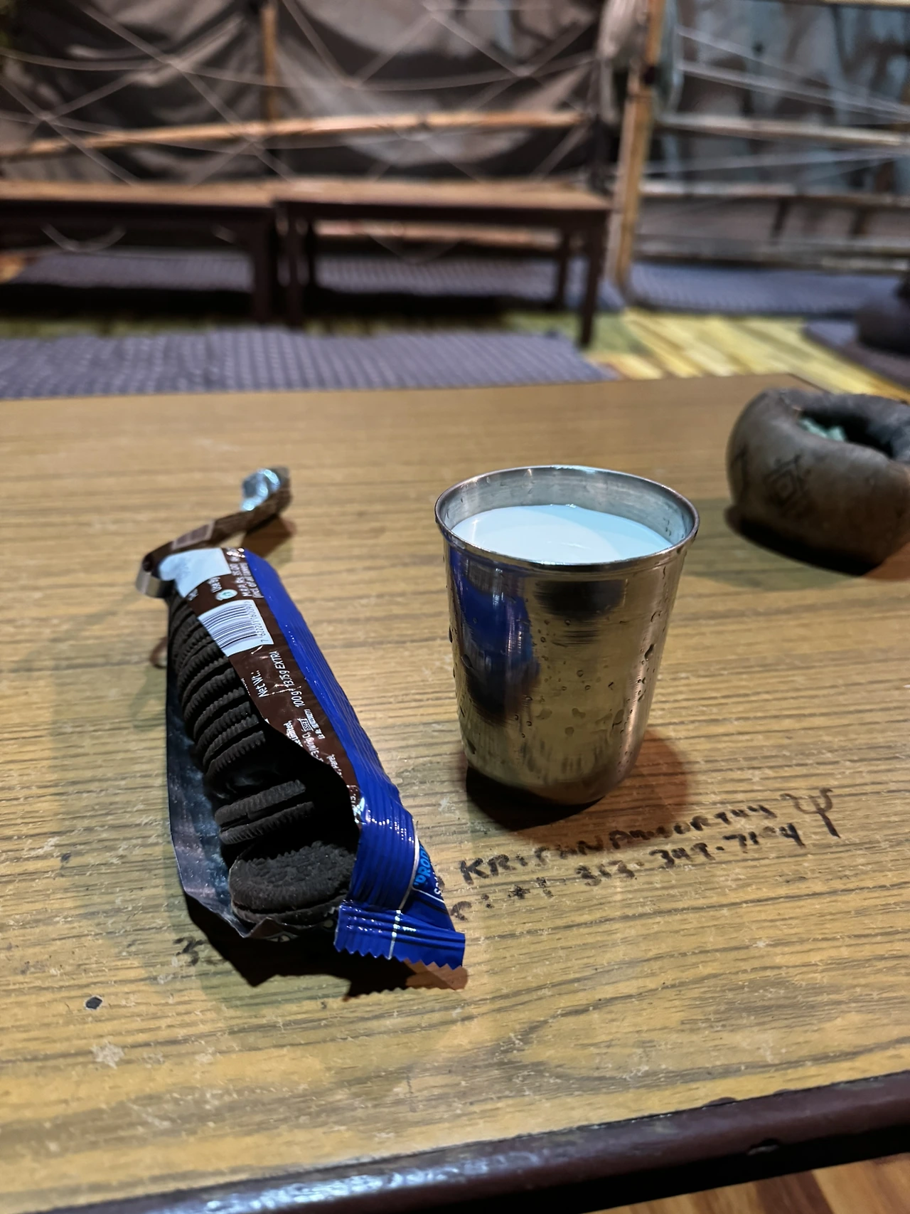 호스텔 옥상에서 오레오와 우유를 맛있게 먹고 있었는데,