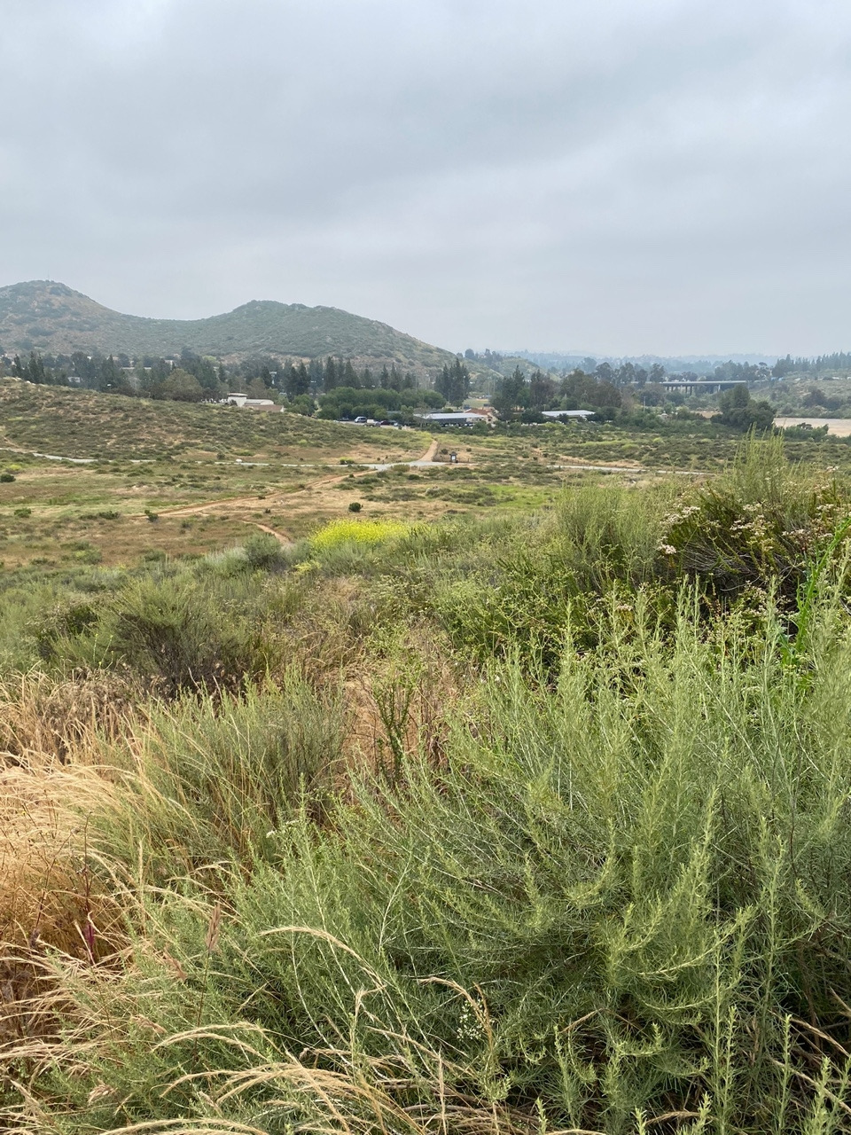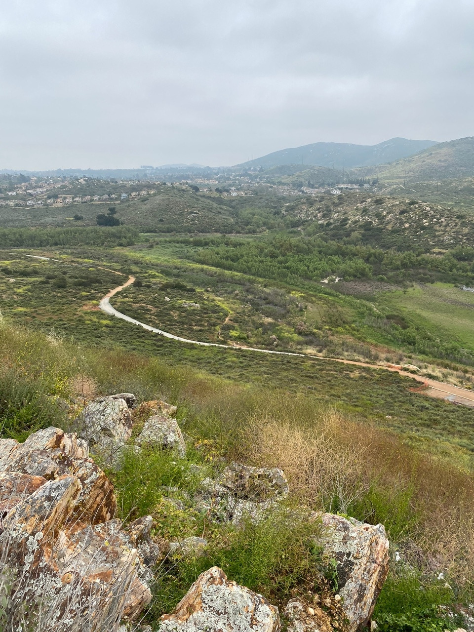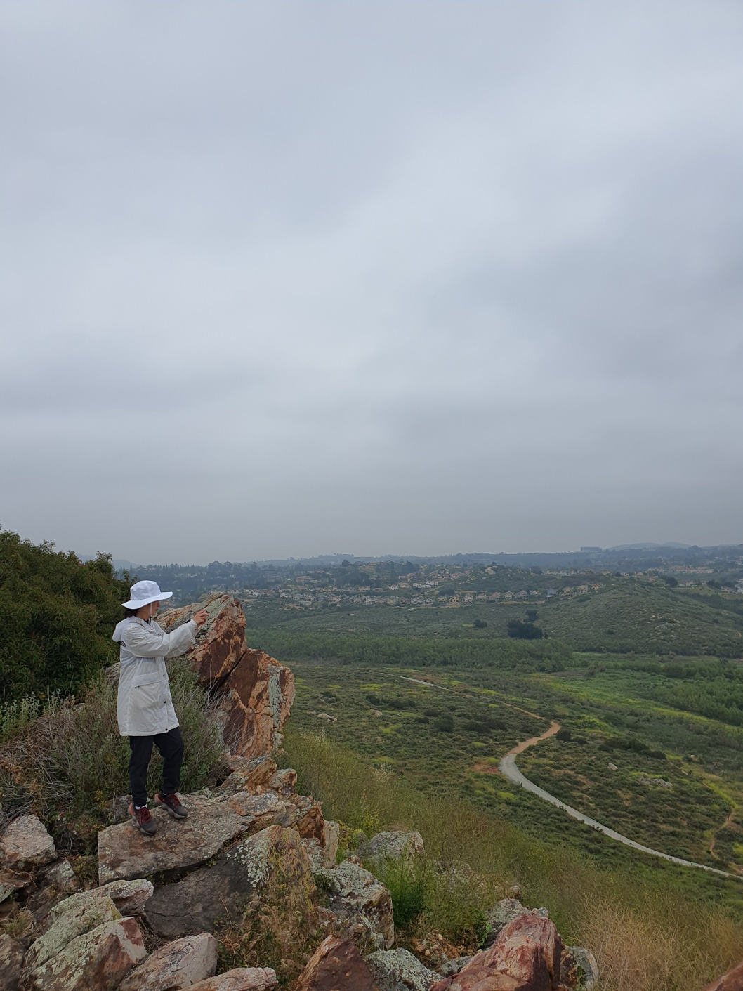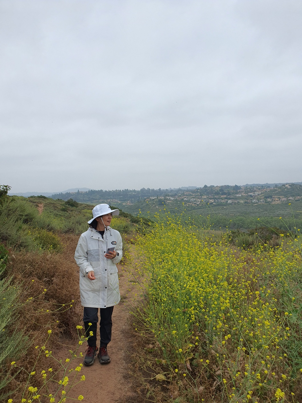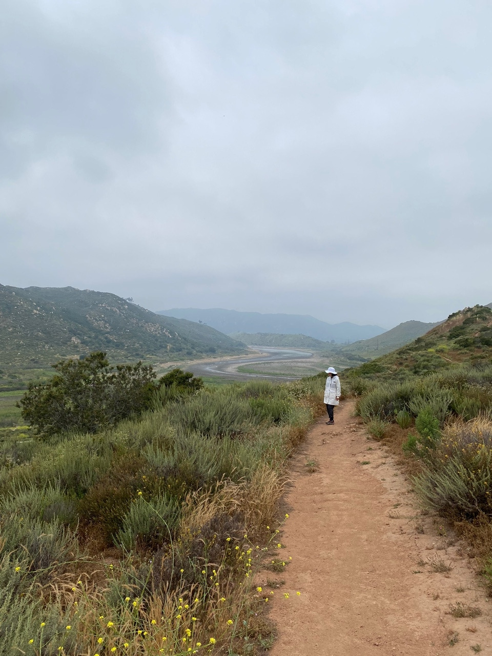 주차하고 몇 걸음 걸으면 바로 trail시작이다. 바로 앞 나즈막한 동산에 오르기까지 30분도 걸리지 않는다 예쁜 꽃도 많고, 저기 보이는 저 풀들에서 허브향이 계속 난다. 아, 그 향도 담고 오고 싶다. 저 멀리 주차한 공원이 보인다. 고작 10여분 걸었을 뿐인데, 이런 호사라니^^ 드디어 Lake Hodges가 보이기 시작. 비가 많이 내렸는데 왜 물이 별로 없는지는 잘 모르겠다. T가 있으니 내 사진도 찍어주네~~ 양 옆으로 물길이 흐르고 저 멀리까지 다 보이는 정상이다. 편하고 멋진 트레일 순위안에 들듯^^ 저기에 있던 저 순간을 즐기는 늠름한^^;;; 모습~
