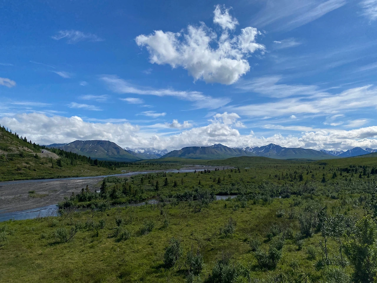 savage river trail과 horseshoe lake trail이 생각보다 너무 좋았다. 그리하여 다음날 무얼 할까 고민하다가 transit bus를 타고 드날리 더 안쪽으로 들어가기로 했다. 원래는 eielson visitor center까지 깊숙이 들어갈 수 있으나, 작년에 무너진 산사태로 인해서 mile 43 지점까지만 transit bus가 들어간다. 곰과 각종 야생동물을 볼 수 있다고 하여 기대가 많았다. 그러나 아쉽게도 5시간이나 넘게 걸려 왕복하는 동안 풍경도 어제와 비슷비슷했고, 야생동물들도 전혀 보지 못했다. 물론 드날리 국립공원이라 경치가 좋지만, 버스로 휘리릭 보는 것은 발로 찬찬히 걷는 것보다 못하기 마련이니까. 모든 게 늘 기대보다 좋을 수는 없다. 기대하지 않고 있는 그대로를 받아들이면 모든 게 다 새롭고 멋진 법이다. 다시 사진을 보니, 역시 빼어난 미모를 가진 드날리다.