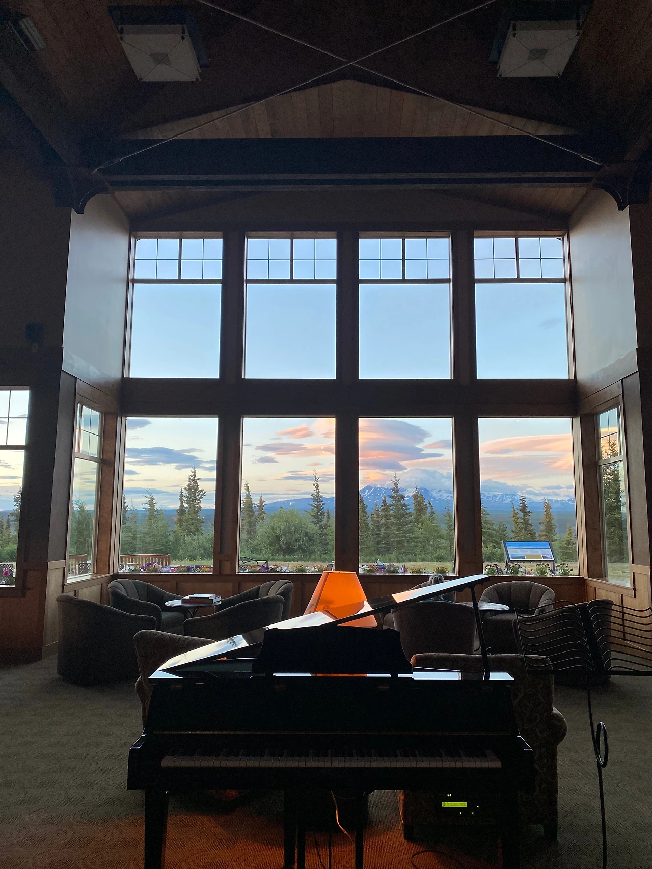 Mckinly도 너무 좋았다. 다만, 이렇게 숙소에 대한 이야기를 남기고 싶을지 잘 몰랐던 때라 사진이 없다. 내가 이 호텔에 반한 건 Cooper River Wilderness Princess Lodge의 풍경 때문이다. 이 로지의 통유리에 비친 Wrangell-St Elias National Park&Preserve 가 보이는가? 로지 안에서 바라보는 풍광이 저러하다.