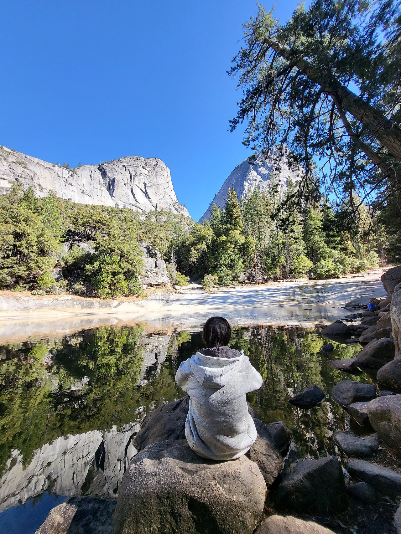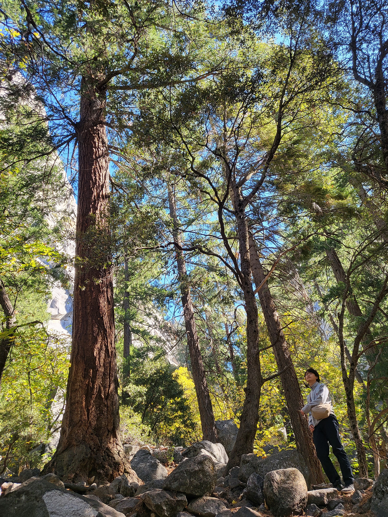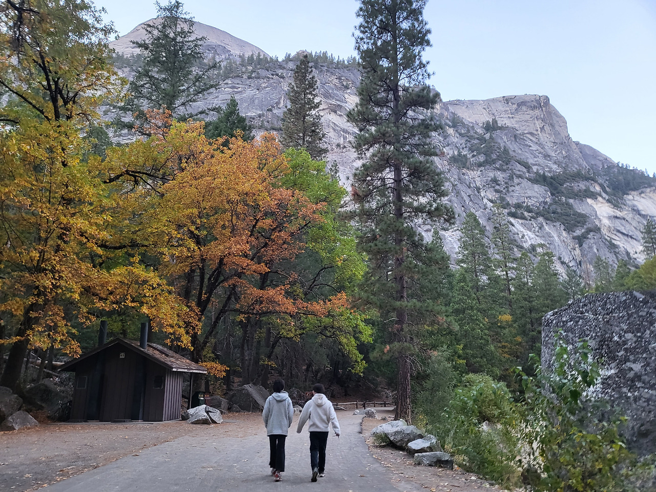 아이들과 요세미티 버스를 타고 정거장마다 내려 소소하게 걸을 생각으로, 등산화도 없이 배낭가방 하나 없이, 그저 사람들이 우르르 가기에 따라나선 trail이다.