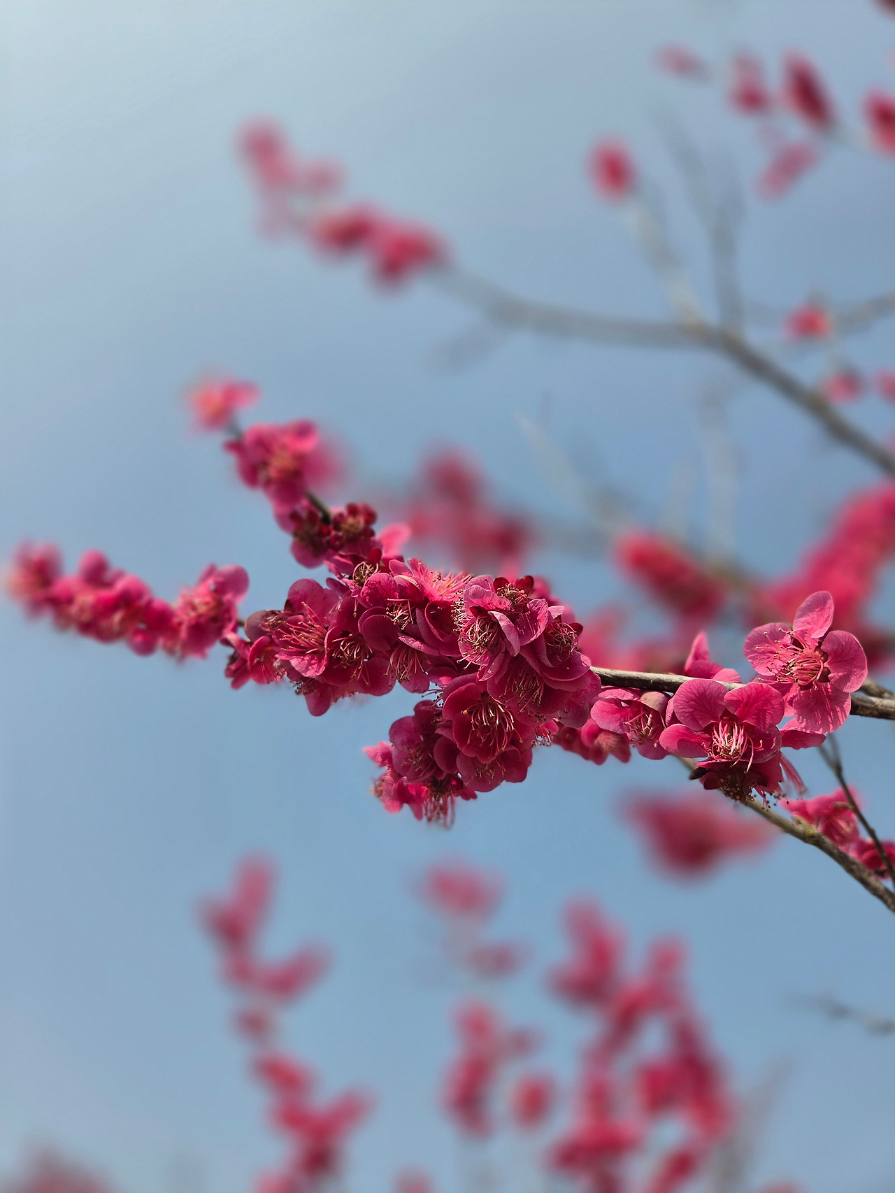 뿌연 하늘 뒤로도, 홍매화는 참으로 예쁜 빛이고,