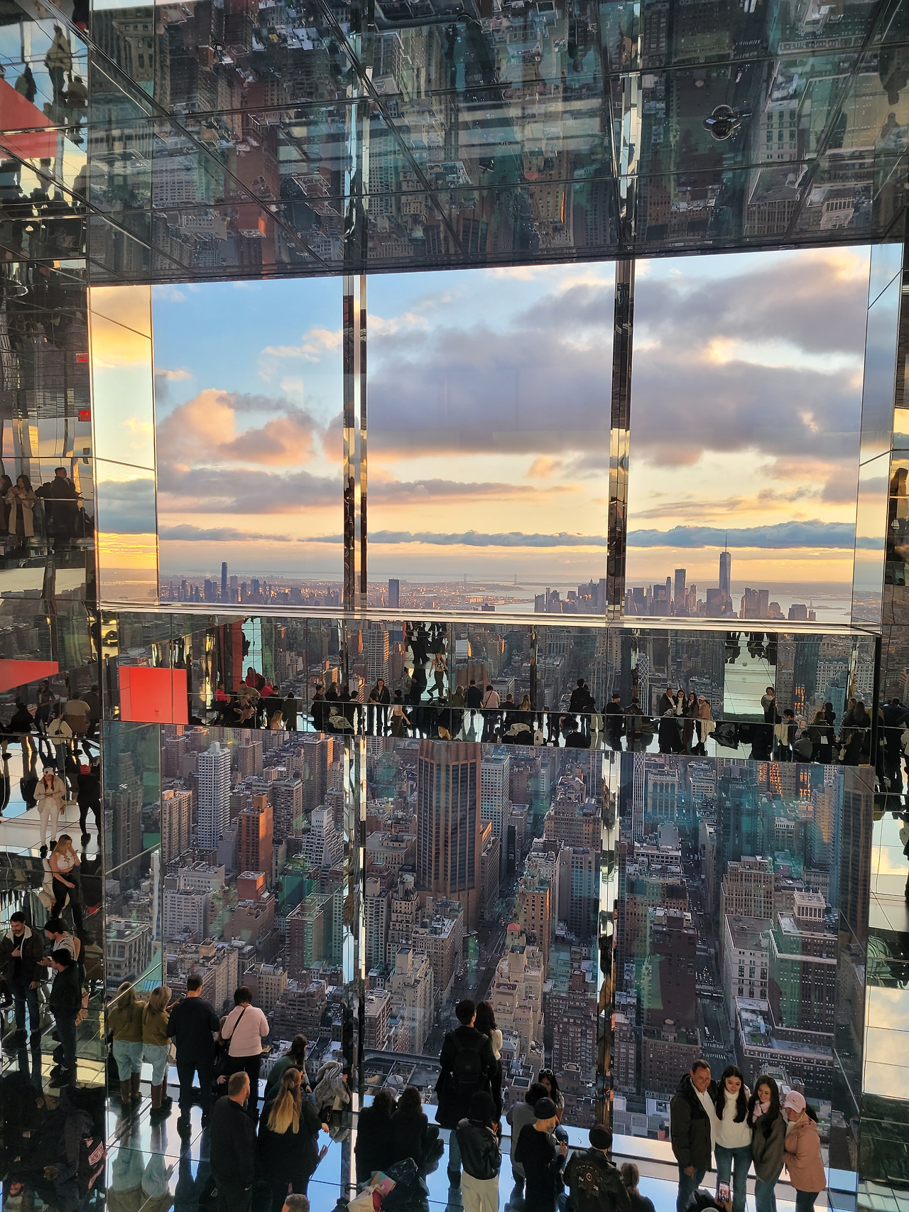 뉴욕을 한 눈에 내려다 보는 전망대로 10년 전에는 엠파이어스테이트빌딩이나 록펠러 센터에 갔었는데, 요즘엔 서밋과 에지가 유명한 것 같다. peak restaurant을 알기 전에, 전망대 하나는 가는 게 좋겠다 싶어서 예약한 서밋 전망대. 일단, 유리로 만든 이 근사한 전망대는, 정말이지 생각의 전환으로 얼마나 많은 부를 창출할 수 있는지를 보여주는 것만 같았다. 수많은 사람이 줄을 지어 엘리베이터로 쏘아 올려지고, 또 그 수많은 사람들(나를 포함)이 SNS에 올리기 위한 다양한 사진을 정신없이 찍어 댄다. 원래 어수선하고 사람 많은 것을 싫어하는 데다가 유리가 주는 묘한 정신없음이 있지만, 그럼에도 불구하고 뉴욕이 한눈에 들어오는 광경은 정말이지 아름답다는 말로밖에 표현이 안 되는 것 같다. 전망대를 볼 때면 항상 해지기 전 1시간 정도 전을 선택한다. 그러면 낮 풍경과 더불어 twilight의 아름다움을 거쳐, 멋진 sunset까지 볼 수 있으니 말이다.