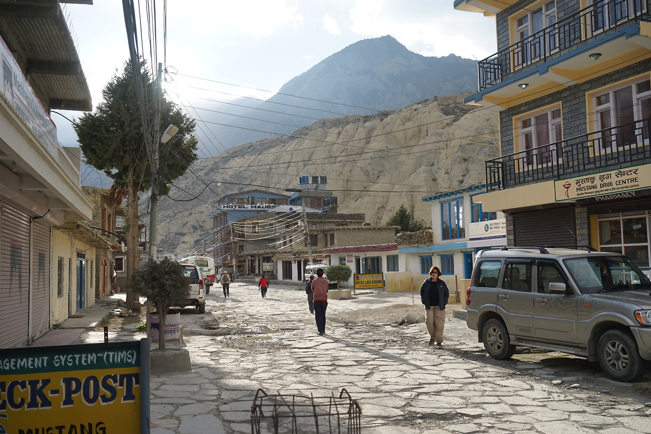 좀솜이 멀리 보이기 시작하자 바람은 서서히 약해지기 시작한다. 이곳 역시 마찬가지로 히말라야의 구름은 오후부터 내려오고 윈디밸리의 바람은 맑은 날이 심하다고 크리슈나는 말한다. 좀솜은 그간의 3000미터 이상의 고지대마을과는 확실히 다른 풍경이었다. 수목이 꽤 많고 날씨도 그리 춥지 않아 침낭을 안 써도 될 정도였다. 2700미터에 위치한 이 마을은 공항이 있기 때문에 꽤 많은 인프라가 집중되어 있다. 은행, 관광, 호텔 등의 시설이 갖춰져 있으며, 마을의 크기도 관문인 베시사하르 이상의 크기다.