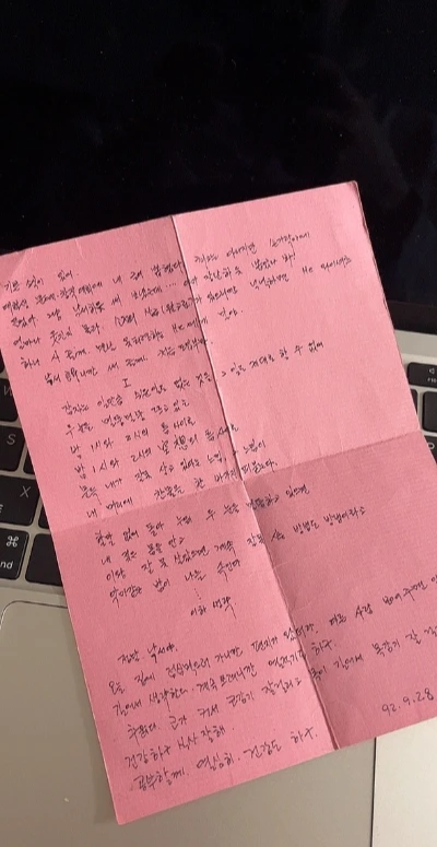 엄마는 엊그제 책을 뒤적이다 23살에 아빠에게 보낸 편지를 발견했다고 한다. 엄마가 내게 건네준 분홍색 종이에 적힌 편지는 꽤 길었다.