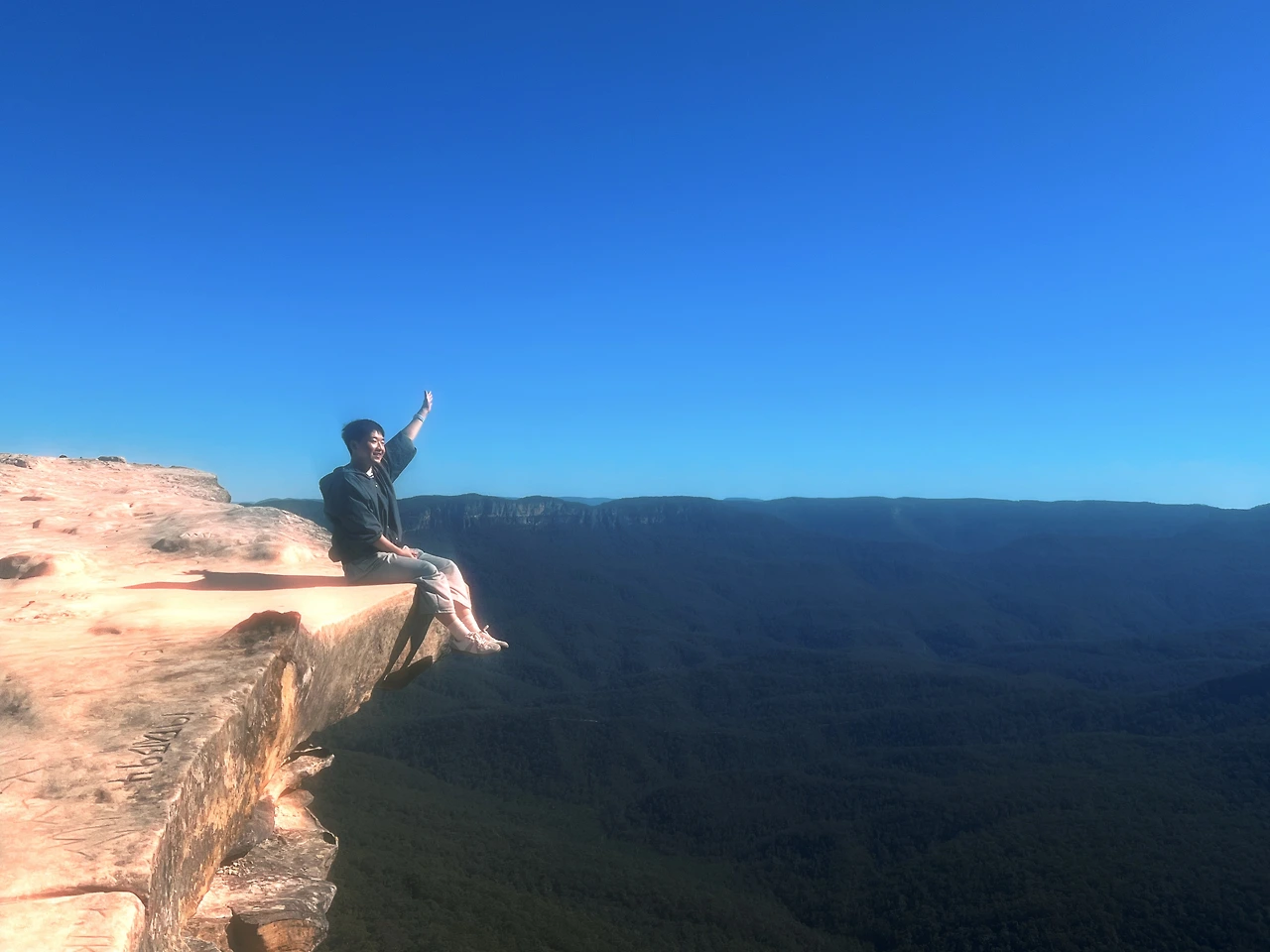 13시까지 집결지에 도착하니 이미 커다란 벤 안에는 많은 사람들이 타고 있었다. 블루 마운틴으로 향하는 동안 가이드님은 쉬지 않고 이야기를 이어갔다. 블루 마운틴의 역사와 배경을 유머리스하고 지루하지 않게 설명해 주셔서 시간 가는 줄 모르고 들을 수 있었다. 링컨스 락에 도착하자 가이드님은 절벽 끝에 앉아 사진을 찍어주겠다고 했다. 나는 다리가 덜덜 떨려 결국 앉은 채로 천천히 움직였다.