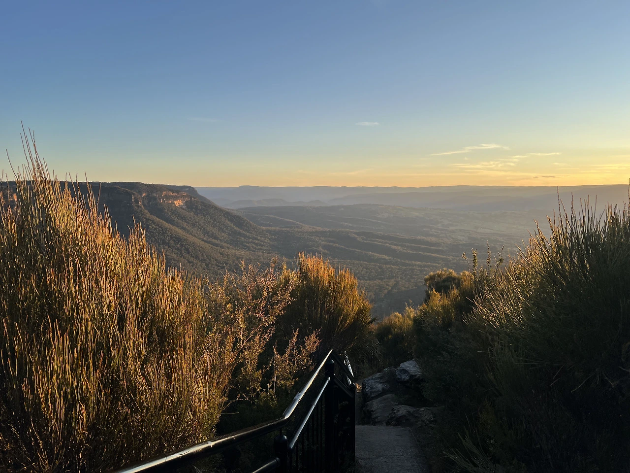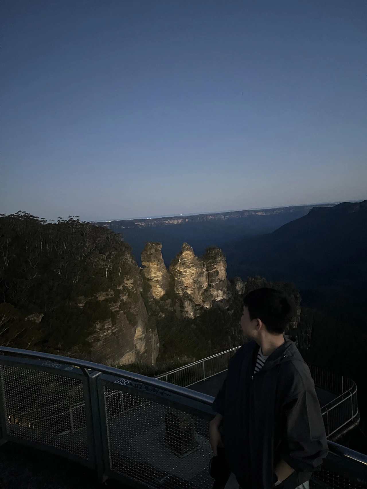 식사를 마친 뒤 다시 차에 올라 세 자매 봉으로 향했다. 세 자매 봉은 절벽 가장자리에서 세 개의 뾰족한 바위 봉우리가 나란히 솟아 있는 모습으로, 이름처럼 세 자매가 서 있는 형상을 닮아 그렇게 불린다고 한다. 전망대로 올라가는 계단을 오르는 중 한 중년 여성 분께서 나에게 나이를 물으셨다. 스물두 살이라고 하자 자신의 아들과 동갑이라며, 혼자 여행하는 걸 부모님이 걱정하지 않으시냐고 물으셨다. 나는 처음에는 많이 걱정을 하셨지만 행복해하는 모습을 자주 보여드리니 이제는 안심하신 것 같다고 답했다. 그러자 그분은 젊은 나이에 이렇게 자유롭게 여행하는 모습이 부럽다고 하셨다.