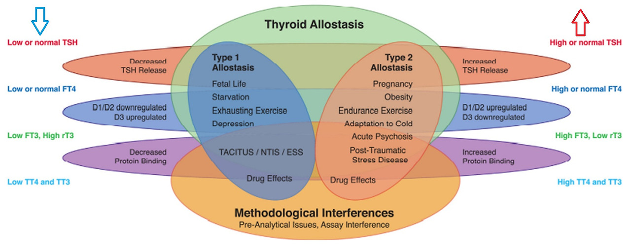 Charzitomaris A, Hoermann R, Midgley JE, Hering S, Urban A, et al, Thyroid Allostasis-Adaptive Responses of Thyrotopic Feedback Control to Conditions of Strain, Stress, and Developmental Programming, Fron Endocrinol, 2017 Jul 20:8:163. doi: 10.3389/fendo.2017.00163,