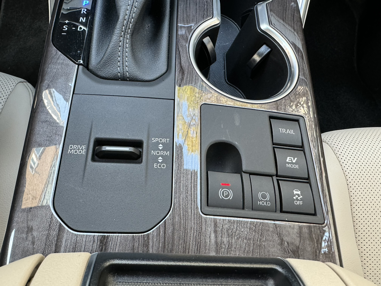 I4 2.5L 엔진과 앞 134kW 모터로 앞바퀴를, 뒤에는 40kW의 모터만으로 구동을 합니다. 사진에 엔진 출력-배터리-모터의 움직임이 잘 표현되어 있습니다. 토요타 특유의 e-FOUR AWD 시스템이라 불립니다. 토요타는 고유의 직병렬 구조로 엔진이 발전과 구동을 함께 합니다. 니켈-메탈 배터리는 288V 1.9kWh 용량으로 작지만 매우 적극적으로 사용합니다. 앞뒤 전기모터만으로도 234마력이라 EV모드도, ‘TRAIL’ 모드에서 뒤쪽 모터를 항상 작동해 오프로드 주파력과 안정성을 높이더군요.