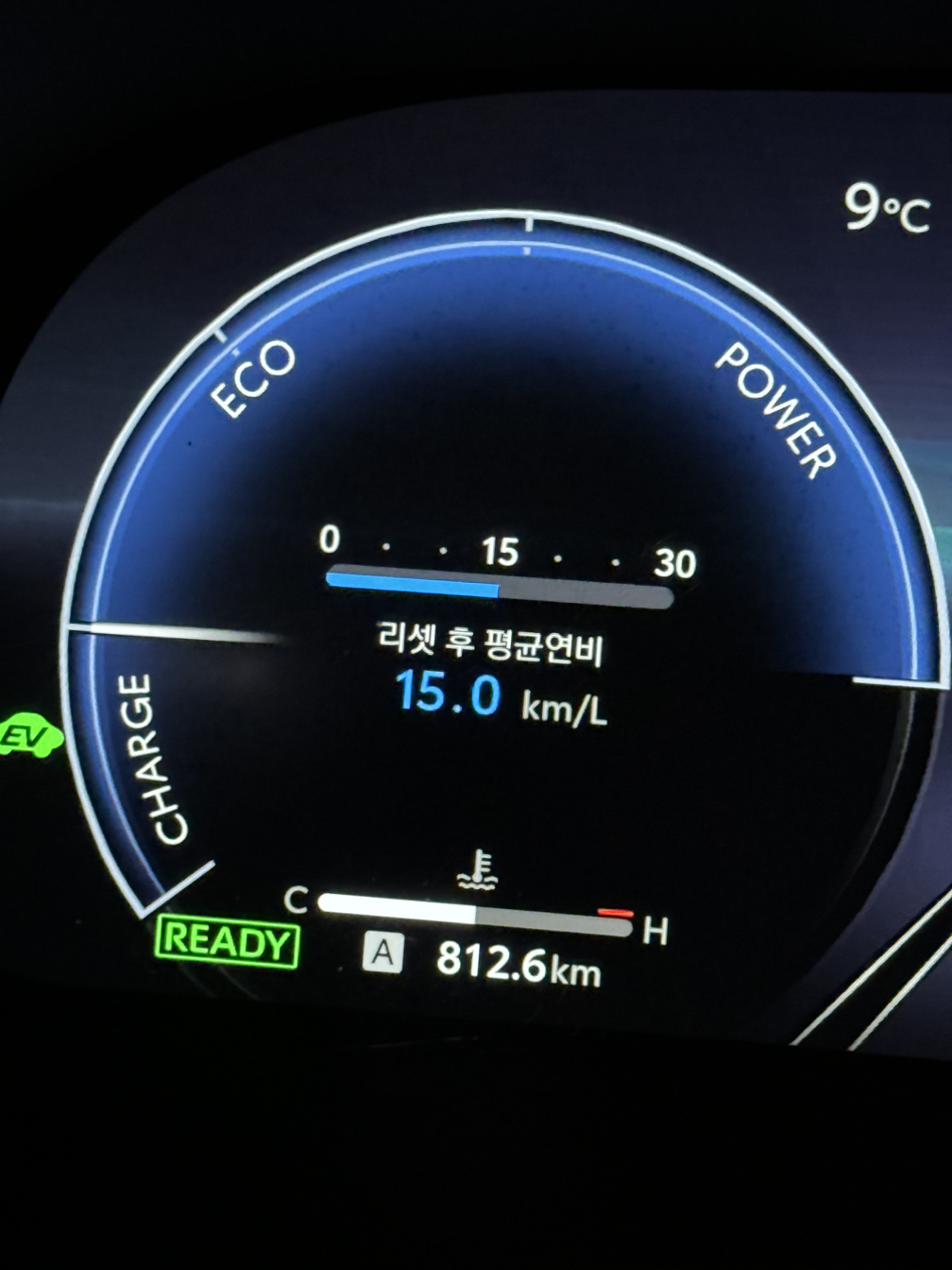 물론 일반 주행 모드에서는 앞쪽 엔진과 모터가 메인입니다. 110km/h 고속도로 주행이 꽤 많았는데 평균 연비가 15.0km/L가 나오더군요. 복합 공인연비가 13.8km/L인데, 고속도로 주행 전 시내 구간에서는 17km/L도 나오더군요. 2톤에 AWD인 7인승 SUV로는 꽤 좋은 숫자 아닌가 싶습니다.