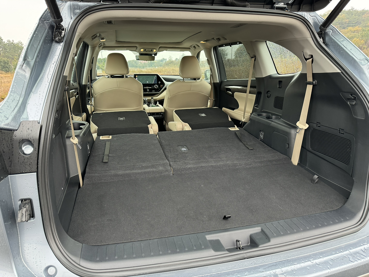 7인승인데 2+2+3 구조입니다. 국산차 7인승은 2+3+2, 6인승이 2+2+2인 것과 다른데 하이랜더는 3열이 4:6으로 접힙니다. 일단 기본 공간은 넉넉합니다. 전체적으로 부드럽게 세팅된 서스펜션과 부드럽고 매우 적절하게 푹신한 시트 쿠션 덕에 1/2열 어디라도 정말 편합니다.