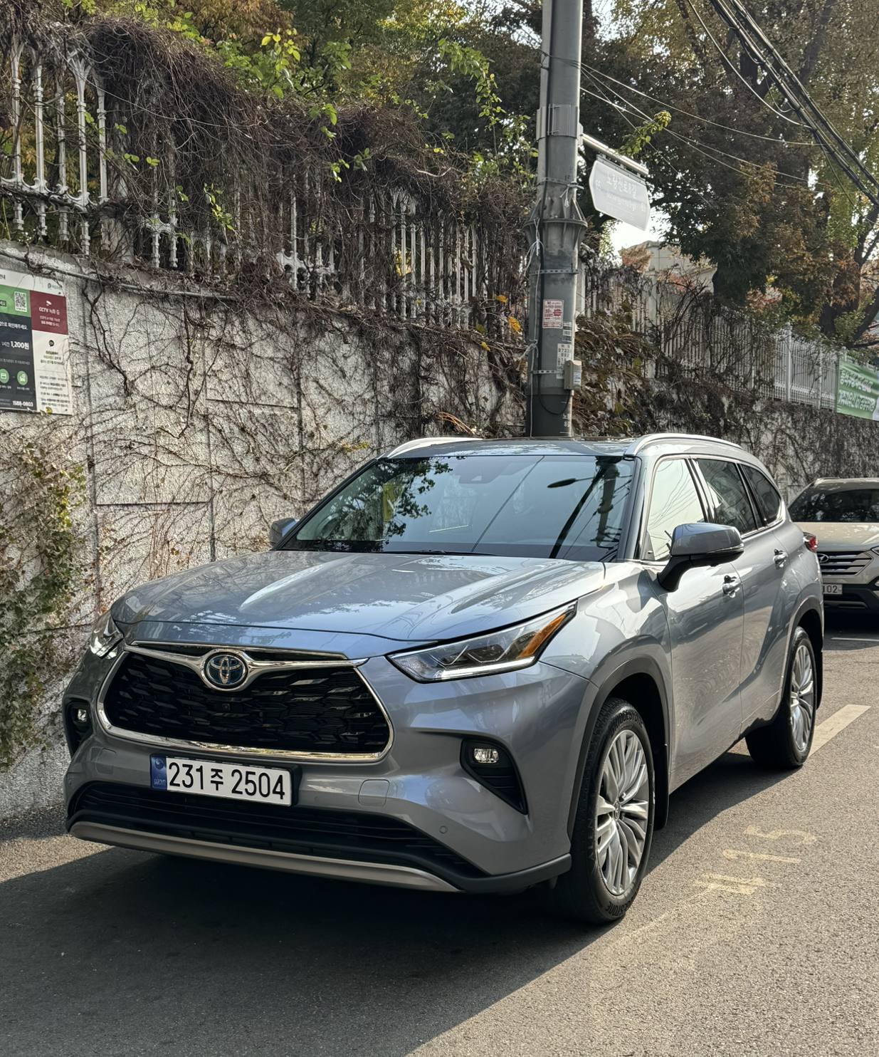 토요타의 중대형 SUV인 하이랜더입니다. 차 크기가 현대자동차 싼타페보다 살짝 크고 팰리세이드보다 살짝 작습니다. 벌써 4세대인데 현 모델은 2019년 론칭해 2022년인가 한번 업데이트가 되었고, 우리나라에는 올해 7월에 처음 판매를 시작했습니다. 국내에는 같은 파워트레인에 사양이 좀 다른 리미티드와 시승차인 플래티넘이 들여옵니다.