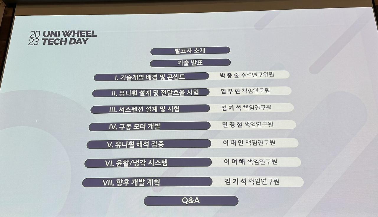 어제 다녀온 현대자동차 그룹 선행연구실의 신기술, 유니버설 휠 드라이브 시스템 발표회입니다.