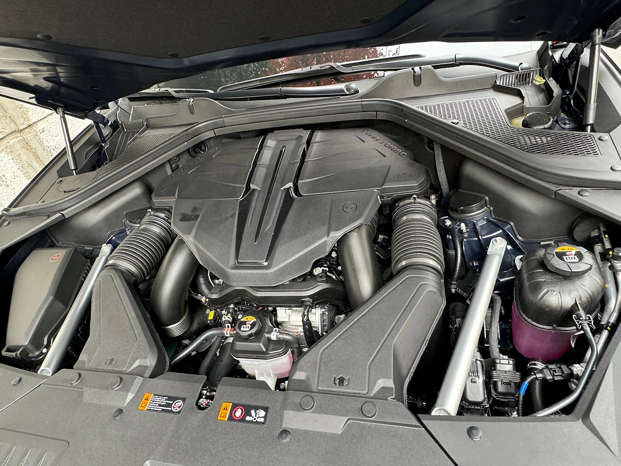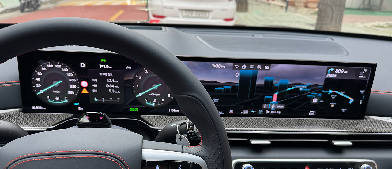 수랭식 인터쿨러를 쓰는 엔진은 4천 rpm이 넘었을 때 펀치력이 살아납니다. 재밌는 건 스포츠 모드에서 액티브 사운드를 강하게 설정했을 때입니다. 저 회전 영역에서 8기통의 그 ‘그르르르르렁’을 잘 살렸습니다. 전에 처음 들었을 때는 마냥 어색했는데 이제는 정말 들을만합니다. 특히 고회전에서 들어오는 엔진 소리와 조화도 좋아서 기분 내기 좋던데요. 이번에 아이오닉 5N의 가상 엔진 사운드도 그렇고 실력이 정말 좋아졌네요. 근데 왜 전방추돌방지 보조 등의 민감도 조절 기능은 사라졌는지 모르겠네요. 너무 자주 울려요. 그렇다고 끌 수도 없고…